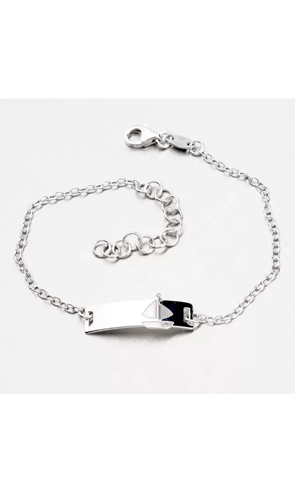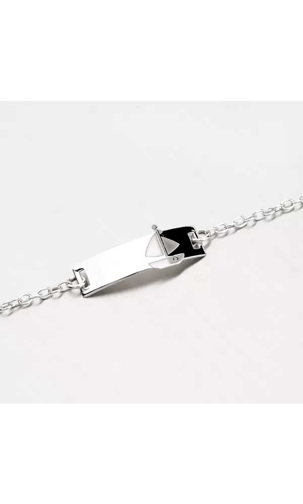 Náramok je vyrobený zo striebra rýdzosti 925/1000 v spojení lesklej a matnej povrchovej úpravy. Práve plachetnica je zvýraznená zamatovým matom. Doštičku môžete ozdobiť rytinou. Vyryť môžete nechať Vami vybraný text ako je napr. meno alebo písmeno. Opis rytiny prosím uveďte v kolónke špeciálne požiadavky.