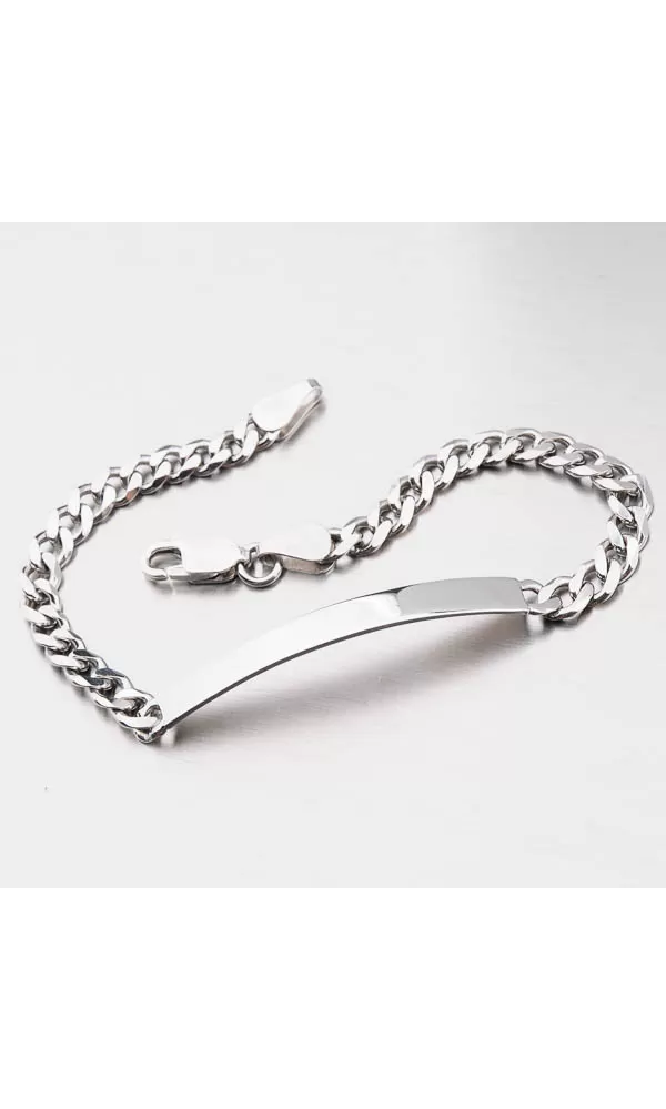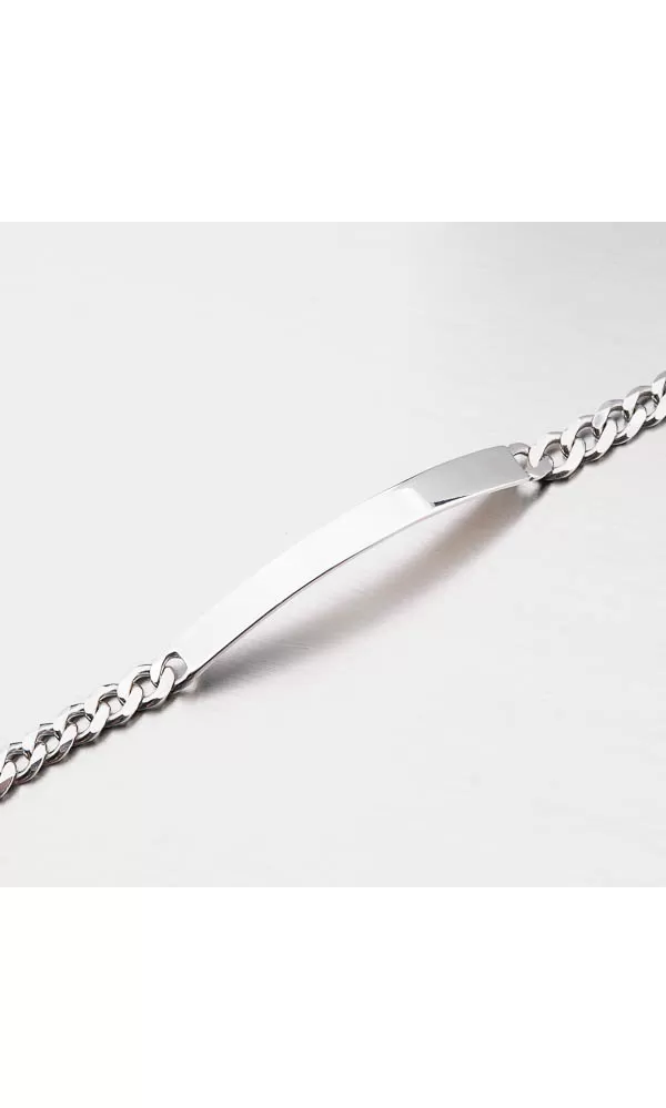 Pánsky náramok je zložený z retiazky Pancer a doštičky, ktorá je umiestnený uprostred. Doštička je príjemne prehnutá pre maximálne pohodlie pri nosení. Doštičku je možné vyzdobiť rytinou a tým vznikne originálny darček, ktorý ocení každý muž. Na doštičku je možné vyryť vami vybraný text ako je napr. meno alebo písmeno. Opis rytiny prosím uveďte v kolónke špeciálne požiadavky. Náramok je vyrobený zo striebra s rýdzosťou 925/1000 v lesklej povrchovej úprave a povrch náramku je zušľachtenýrhodiovaním. Strieborný náramok zapnete masívnou karabínou.