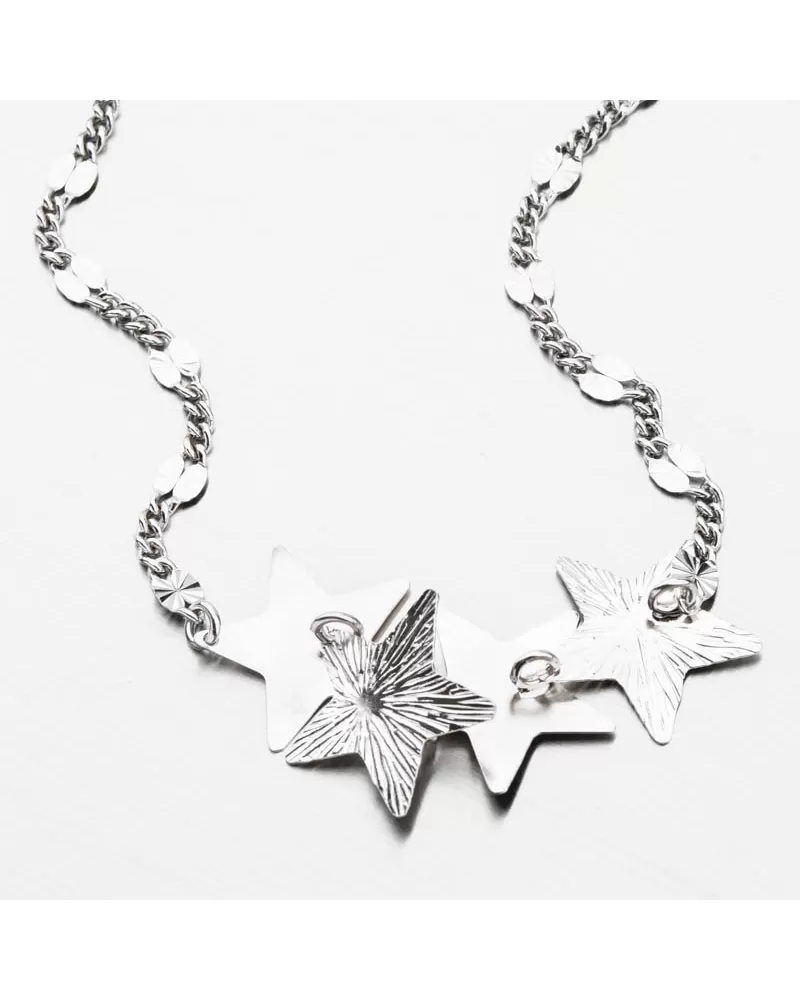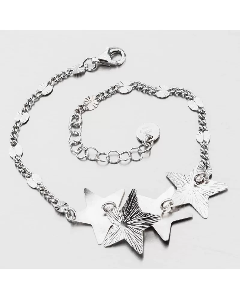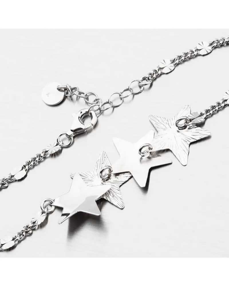 Doprajte si tento nádherný šperk. Nádherný trblietavý náramok ozdobený v strede hviezdami. Dve sú vo vysokom lesku a dve sú s gravírovaním-facetami. Facety sú tiež na oválnych spojoch. Facety sú zhotovené diamantovým nástrojom, ktorý dodáva vzniknutým facetám maximálny lesk, vďaka ktorému dokonale odráža svetlo a majú krásnu brilanciu zo všetkých uhlov pohľadu!