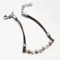 Moderný náramok tvorený z hnedej kože a strieborných a ružových dielikov. Ružovú farbu zlata dodáva technika zlatenia PVD. Prednosťou zlatenia technológií PVD je vysoká tvrdosť a odolnosť proti oteru! Ide o hrubú vrstvu, ktorá preniká do pôvodného materiálu. Zlatenie technológií PVD sa dá porovnať s približne 12 mikrónmi galvanického zlatenia, čo je vysoká hodnota, ktorá pri bežnom nosení vydrží až 12 rokov.