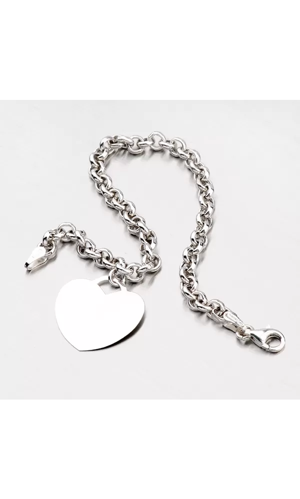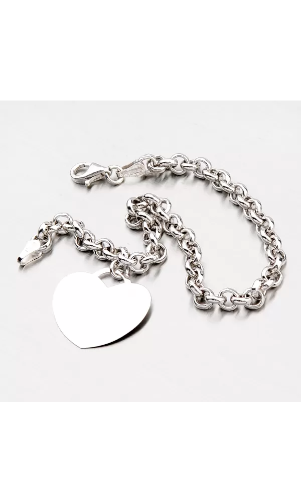 Moderný náramok pre ženy s doštičkou v tvare srdca. Srdce je hladké a skvele na ňom vynikne Vami vymyslená rytina zo srdca. Nejednu ženu poteší ale aj prekvapí tento originálny darček. Náramok je vyrobený zo striebra rýdzosti 925/1000 v lesklej povrchovej úprave.