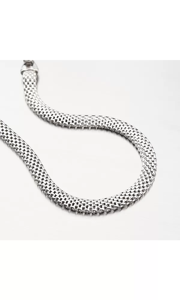 Náramok je vyrobený zo striebra o rýdzosti 925/1000 v lesklej povrchovej úprave s rhodiovaním. Ródium je ušľachtilý drahý kov zo skupiny platinových kovov. Rhodiovaním strieborných šperkov galvanickým nanášaním tohto drahého kovu sa stáva povrch šperku tvrdší, stálejší a odolnejší voči vonkajším vplyvom ako je mechanický oter, poškriabanie, nabiehanie striebra, ľudský pot, kozmetické prípravky a ďalšie. Ródium je antialergické.