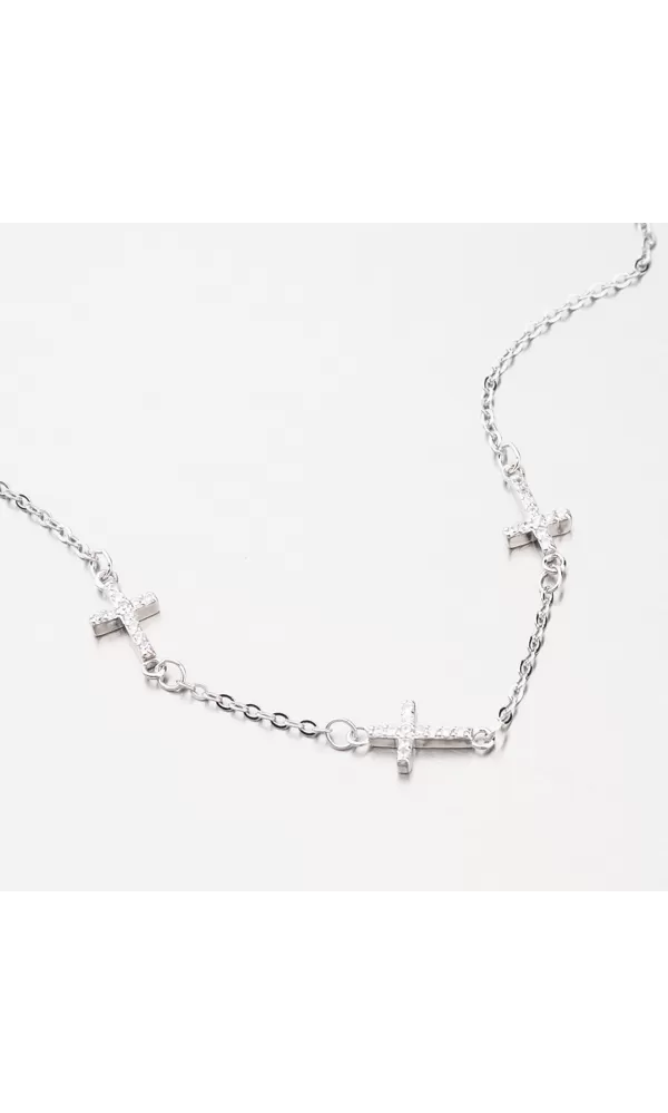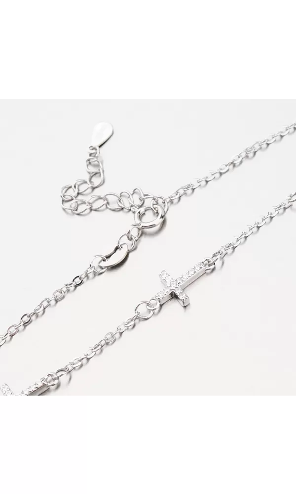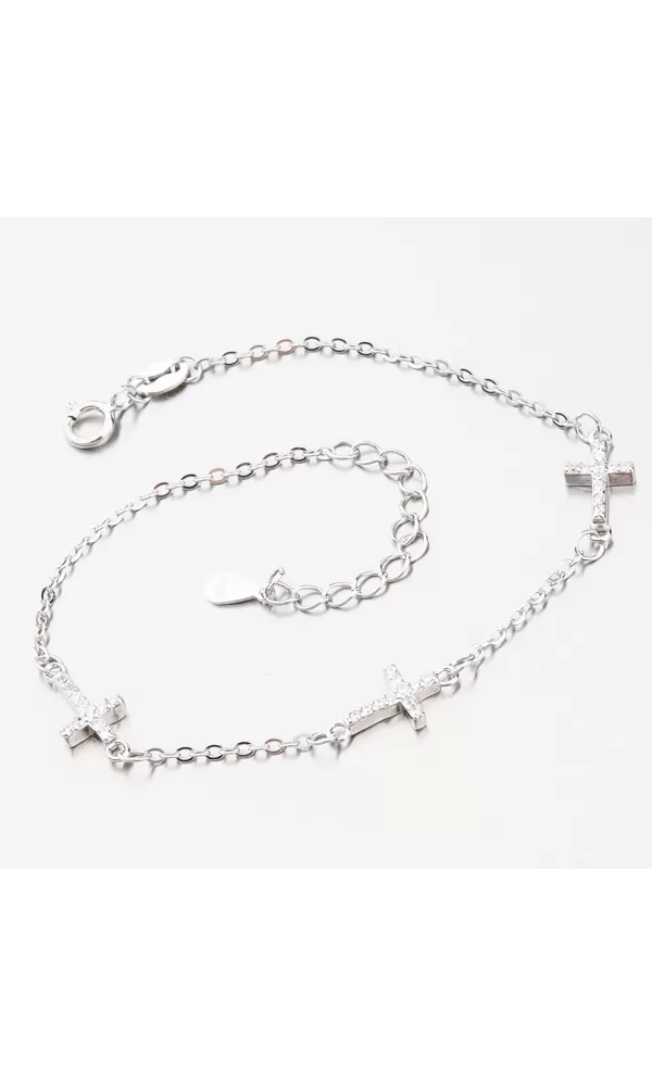 Dámsky náramok v jemnom dizajne je zdobený krížikmi napevno pripevnenými. Krížiky sú leštené do vysokého lesku a sú zdobené zirkónmi. Náramok sa zapína na karabínku. Jeho dĺžka je 17 cm s použitím prídavnej retiazky s dĺžkou 4 cm sa dá náramok zapnúť až na dĺžku 21 cm