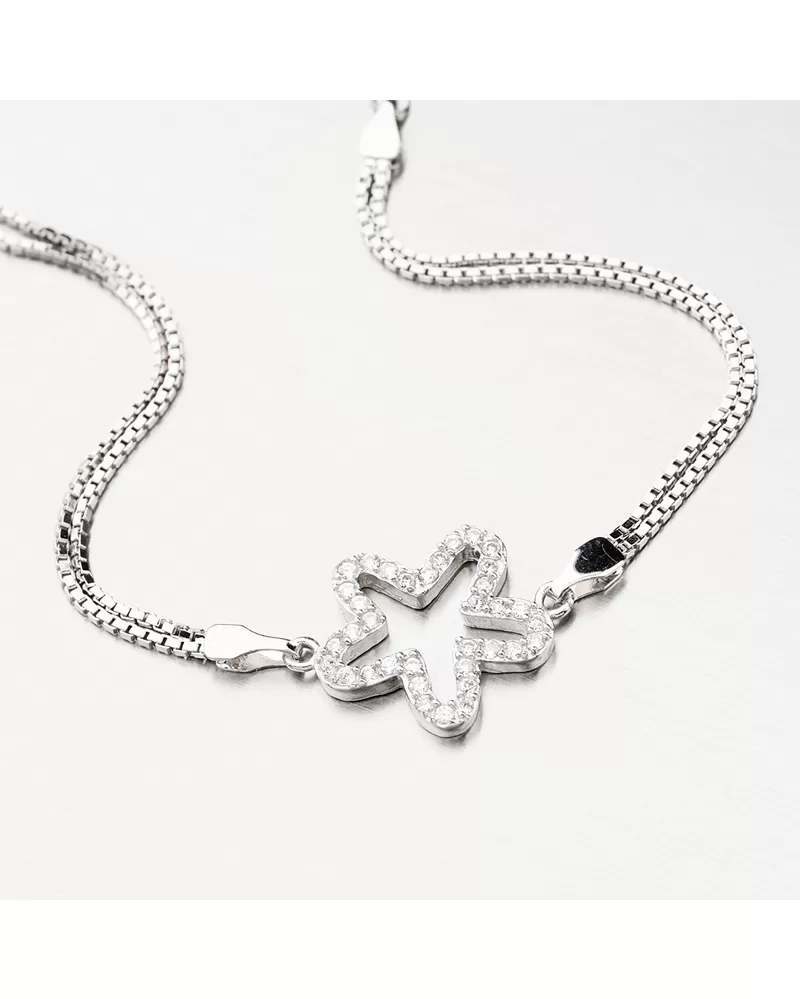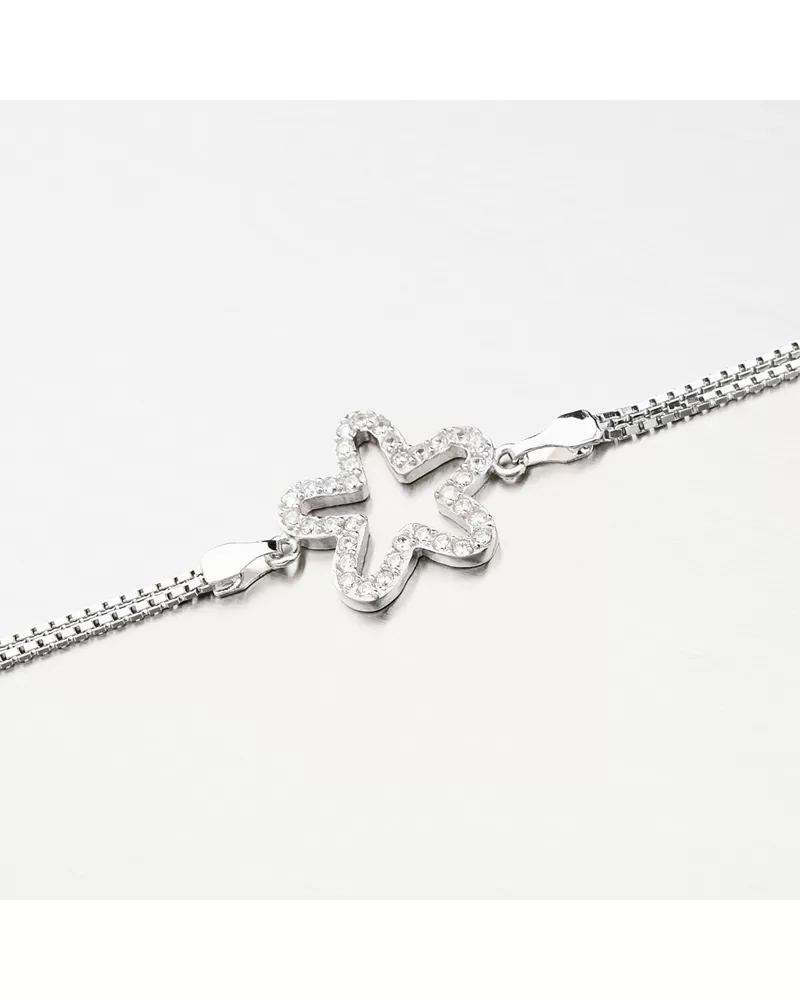Strieborný náramok so zirkónmi kvetina BST-14486/18