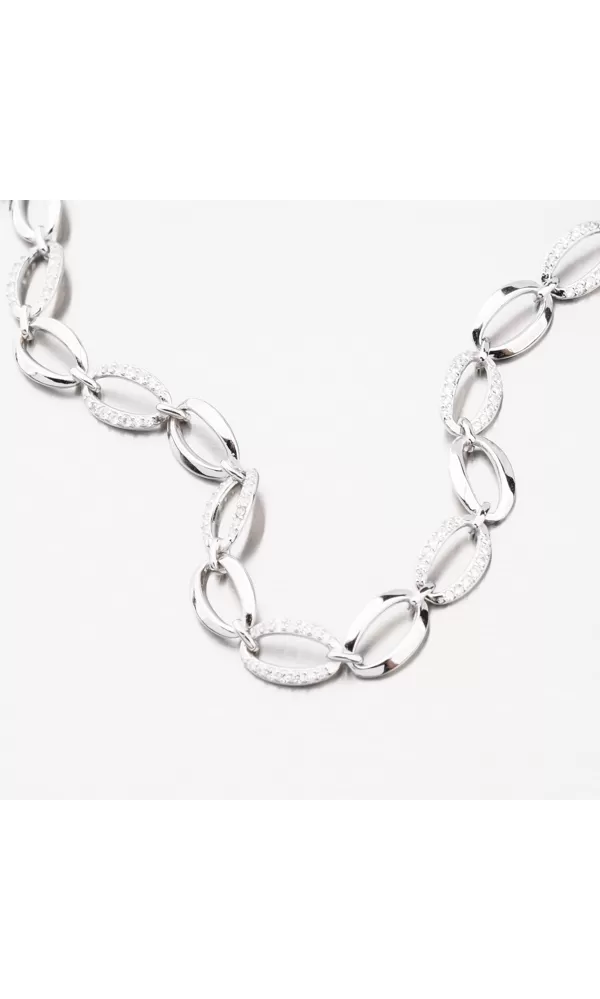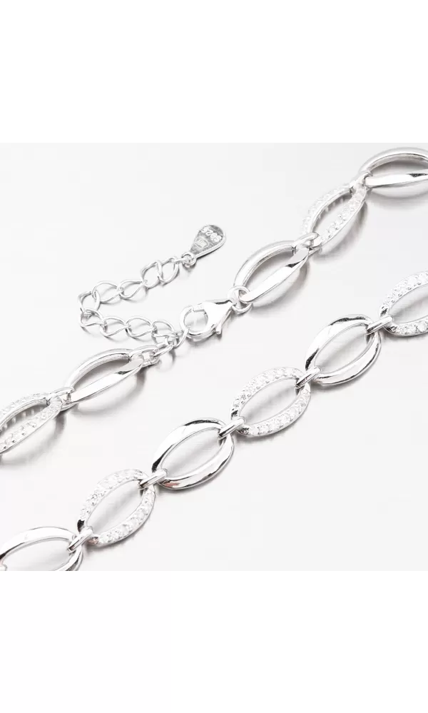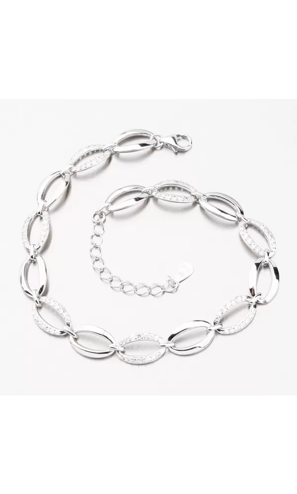 Romantický strieborný náramok tvorený z prepletených oválnych očiek, kde sa strieda jedno očko vo vysokom lesku a potom očko osadené z prednej strany zirkónmi Zirkóny sú briliantového brusu, ktorý zaisťuje maximálnu brilanciu vybrúsených facet, dokonale odráža svetlo a neuverí. pohľadu. ruky zaručene neprehliadnete. Náramok vyzerá výrazne, aj napriek tomu je jeho váha nižšia, preto je jeho celodenné nosenie veľmi pohodlné.