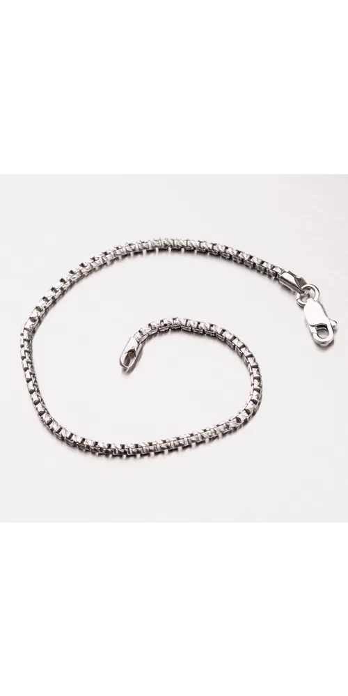 Náramok typu Venezia je vyrobený zo striebra o rýdzosti 925/1000 zo štvorcových očiek nadväzujúcich na seba, ktoré budia dojem lanka. Každé očko je upravené diamantovým nástrojom, ktorý vytvára facety zaručujúce maximálny lesk šperku zo všetkých uhlov pohľadu. Pre vysokú odolnosť náramku je jeho povrch zušľachtený rhodiovaním. Ródium je ušľachtilý drahý kov zo skupiny platinových kovov. Rhodiovaním strieborných šperkov galvanickým nanášaním tohto drahého kovu sa stáva povrch šperku tvrdší, stálejší a odolnejší voči vonkajším vplyvom ako je mechanický oter, poškriabanie, nabiehanie striebra, ľudský pot, kozmetické prípravky a ďalšie. Ródium je antialergické.