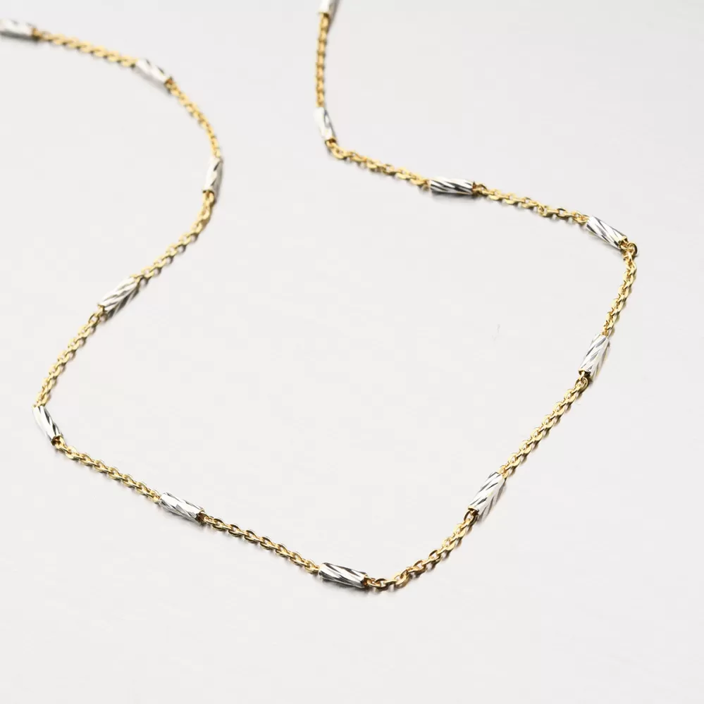 Náramok je tvorený z obľúbenej retiazky Anker, ktorá je známa svojou pevnosťou a leskom. Na náramku môžeme vidieť na seba nadväzujúce valčeky, ktoré sú povrchovo upravené facetami. Facety sú robené pomocou diamantového nástroja a vďaka ich lesklému povrchu odrážajú svetlo a šperk sa tak stáva super lesklým zo všetkých uhlov.