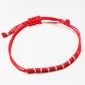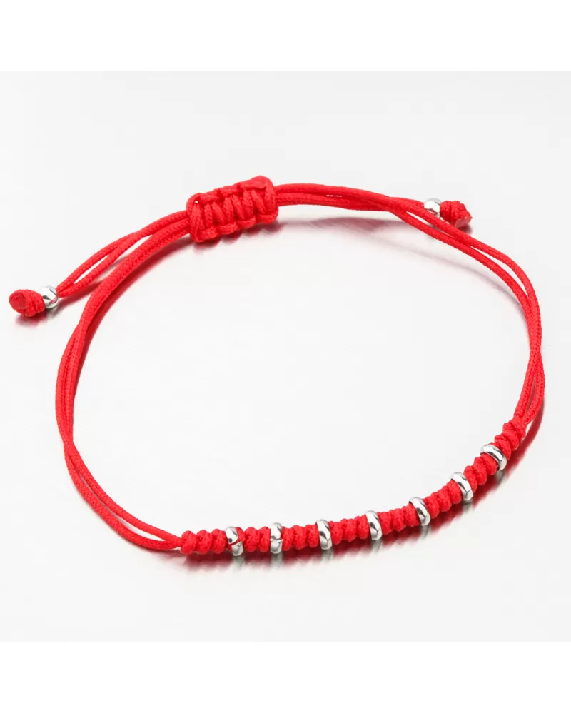Veľmi obľúbený typ povrázkového náramku, ktorý má výhodu vo svojej univerzálnej veľkosti a tiež vhodnosti pre obe pohlavia. Náramok je tvorený z dvojitého červeného povrázku, ktorý je ozdobený vo svojom strede prepletenou časťou a striebornými krúžkami.