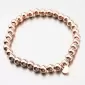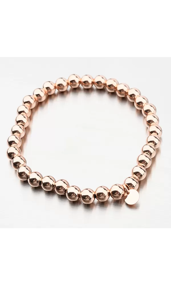 Elegantný náramok s guličkami, ktorý je bez zapínania a je pružný, aby sa dal ľahko nasadiť a bol príjemný na nosenie. Ružovú farbu zlata mu dodáva technika zlatenia PVD. Prednosťou zlatenia technológií PVD je vysoká tvrdosť a odolnosť proti oteru! Ide o hrubú vrstvu, ktorá preniká do pôvodného materiálu. Zlatenie technológií PVD sa dá porovnať s približne 12 mikrónmi galvanického zlatenia, čo je vysoká hodnota, ktorá pri bežnom nosení vydrží až 12 rokov.