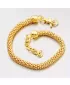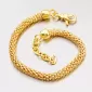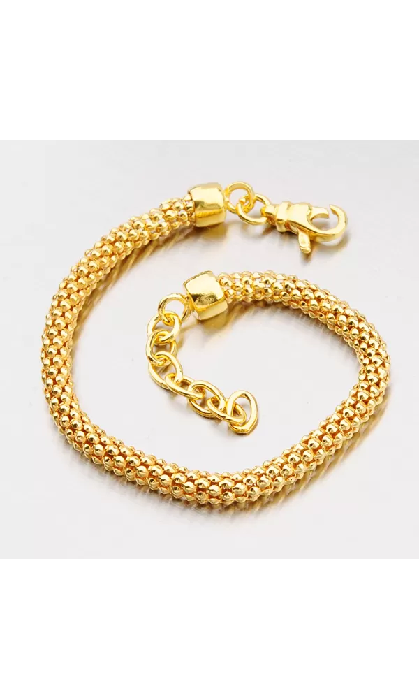 Úžasný náramok je vyrobený zo striebra rýdzosti 925/1000 v lesklej povrchovej úprave, pozlátený žltým zlatom, ktoré je momentálne veľmi moderné. Tento štýl náramkov je medzi ženami veľmi populárny. Je veľmi pohodlný a padne takmer každej žene. Dĺžka tohto strieborného náramku je 17 cm ale s prídavnou predlžujúcou retiazkou, ktorá je dlhá 3cm, môžete náramok zapnúť až na dĺžku 20 cm. Náramok sa zapína na bezpečnú karabínku.