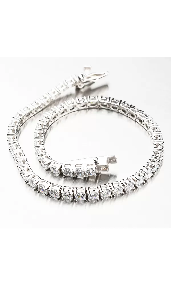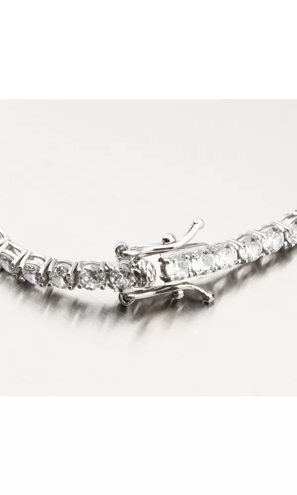 Náramok je zdobený zirkónmi v briliantovom bruse, ktoré sú vsadené jeden vedľa druhého.