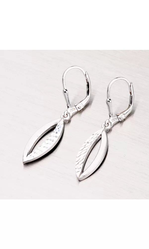 Prepracované dámske náušnice sú v tvare kvapiek s prierezmi zdobené zamatovým matom a diamantovým gravírovaním, kde diamantový hrot rýbacieho nástroja zaisťuje neuveriteľne vysoký lesk. Náušnice sú vyrobené zo striebra rýdzosti 925/1000 a povrch náušnice je zušľachtený rhodiovaním. Ródium je ušľachtilý drahý kov zo skupiny platinových kovov. Rhodiovaním strieborných šperkov galvanickým nanášaním tohto drahého platinového kovu sa stáva povrch šperku tvrdší, stálejší a odolnejší voči vonkajším vplyvom ako je mechanický oter, poškriabanie, nabiehanie striebra, ľudský pot, kozmetické prípravky a ďalšie. Ródium je antialergické. Tieto náušnice sa zapínajú na klapku.