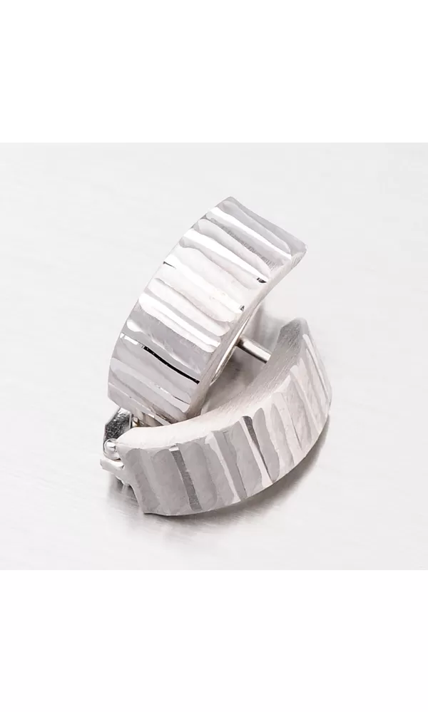 Náušnice sú vyrobené zo striebra rýdzosti 925/1000 v lesklej povrchovej úprave a povrch náušníc je zušľachtený rhodiovaním. Ródium je ušľachtilý drahý kov zo skupiny platinových kovov. Rhodiovaním strieborných šperkov galvanickým nanášaním tohto drahého platinového kovu sa stáva povrch šperku tvrdší, stálejší a odolnejší voči vonkajším vplyvom ako je mechanický oter, poškriabanie, nabiehanie striebra, ľudský pot, a ďalšie. Ródium je antialergické.