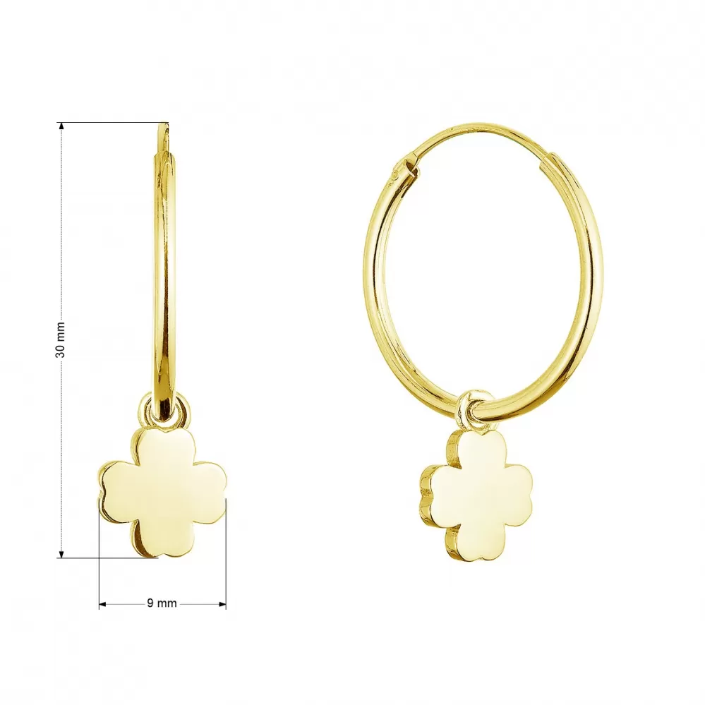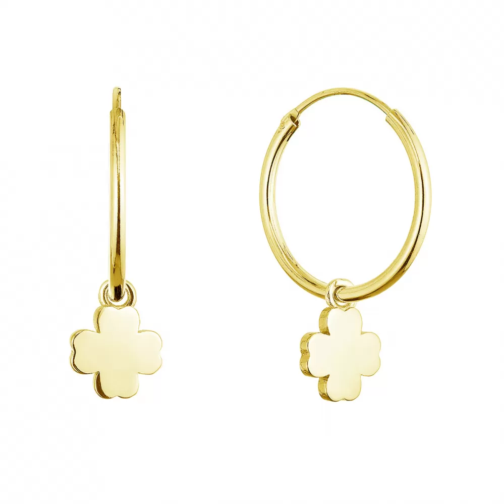 Pozlátené strieborné náušnice kruhy so štvorlístkami 61057