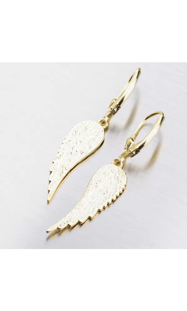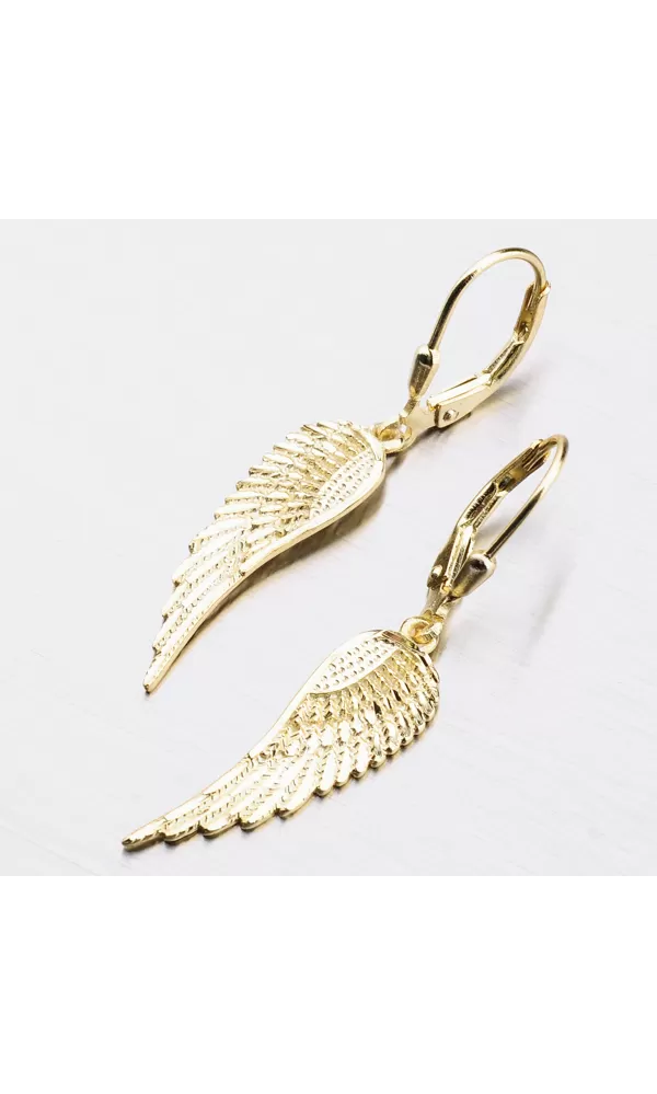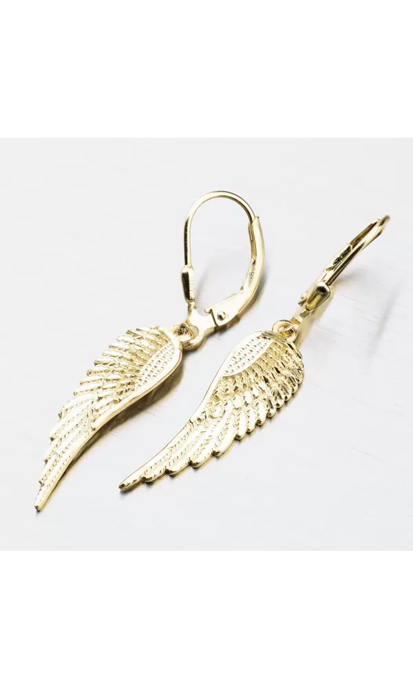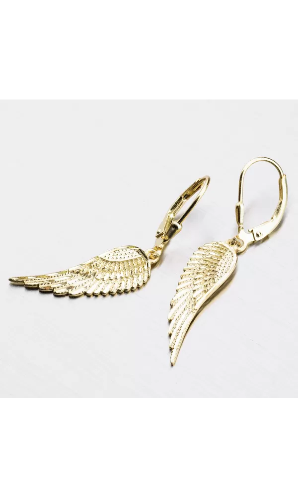 Krásne dámske lopatky vás oslnia farbou žltého zlata, ktorá im bola daná do povrchu PVD. Náušnice pozostávajú z prívesku na tvare krídla, ktorý sa presne vyrába podrobne. Pre dokonalé zvýraznené a trblietavé náušnice sú krídla zdobené gravírovaním. Gravírovanie sa vyrába hrotmi diamantových rýb, ktorá zaisťuje najvyšší možný lesk vyrytej fazety. Elegantné náušnice sú pripevnené k klapke.