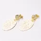 Náušnice sú zdobené príveskom v oválnom tvare, ktorý je vo veľmi zaujímavom a veľmi efektnom prevedení. Visiace náušnice sa zapínajú na puzete.