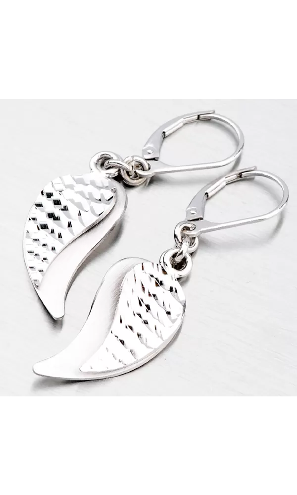 Máte rada vkusné a výraznejšie šperky? Môžeme vám ponúknuť novinku vo forme visiacich náušníc. Náušnice sú zdobené príveskom, ktorý tvarom pripomína lístok. Prívesok je zdobený zamatovým matom a lesklým diamantovým gravírovaním, kde diamantový hrot rýbacieho nástroja zaisťuje neuveriteľne vysoký lesk. Zapínanie týchto náušníc je na klapku.