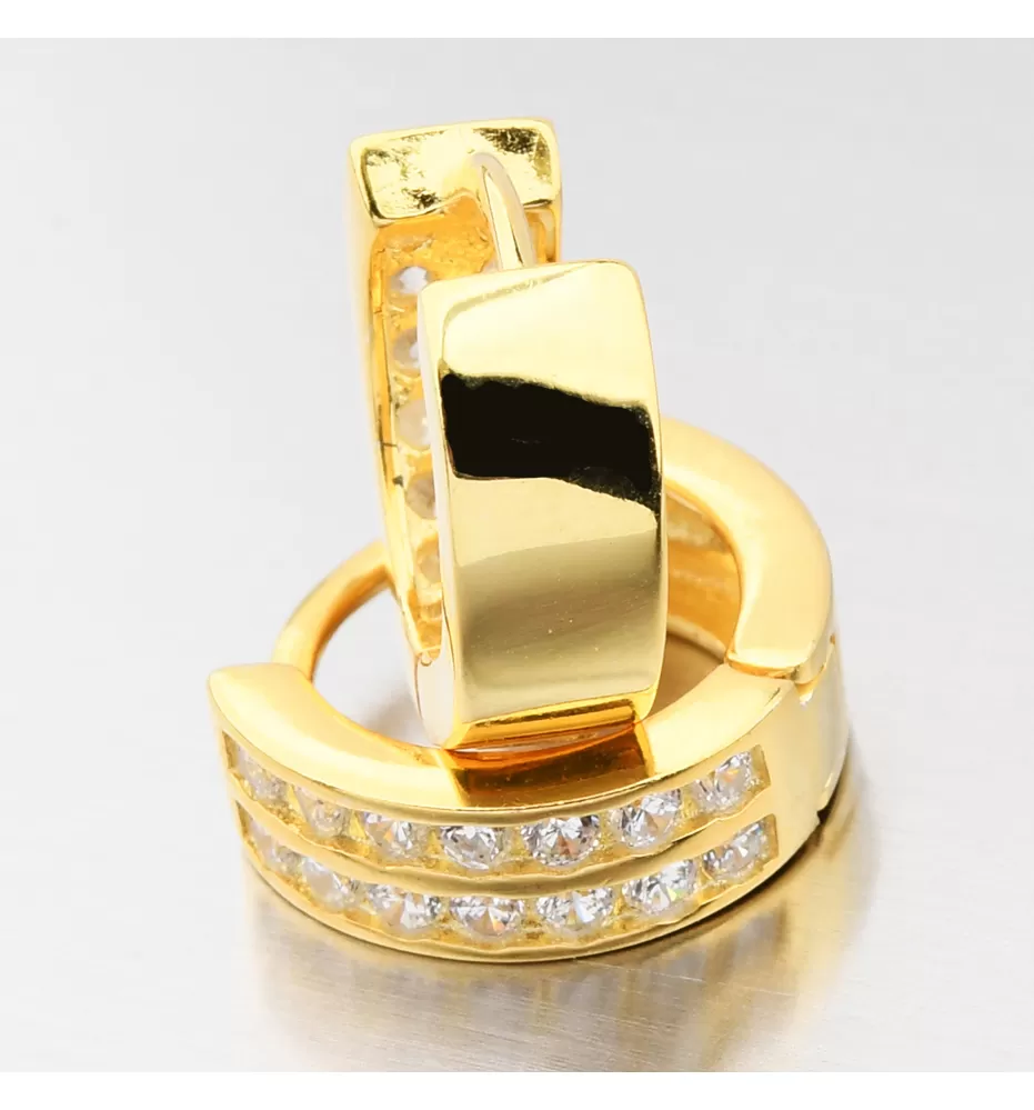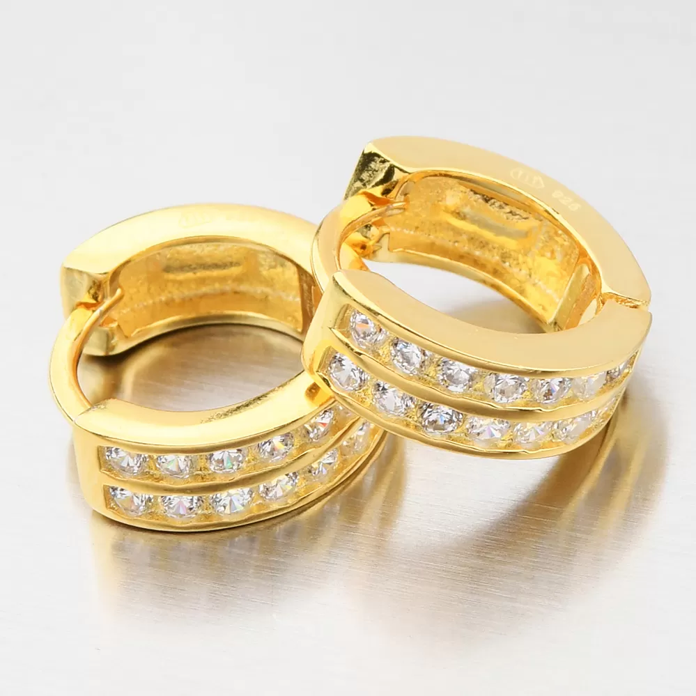 Moderné strieborné kruhy by vám nemali chýbať. Náušnice sú zdobené zirkónmi v briliantovom bruse v dvoch radoch. Náušnice kruhy sú pozlátené technikou PVD. Prednosťou zlatenia technológií PVD je vysoká tvrdosť a odolnosť proti oteru! Ide o hrubú vrstvu, ktorá preniká do pôvodného materiálu. Zlatenie technológií PVD sa dá porovnať s približne 12 mikrónmi galvanického zlatenia, čo je vysoká hodnota, ktorá pri bežnom nosení vydrží až 12 rokov. Tieto nadčasové náušnice musíte mať. Sú vhodné na každodenné nosenie.