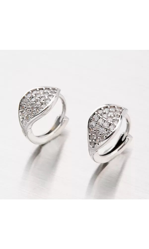 Krúžky sú v lesklej povrchovej úprave. Náušnice majú vzor lístočka, ktorý je vysadený žiarivými zirkónmi. Náušnice vyzerajú veľmi neobvykle a ich originálny vzhľad Vás bude baviť.