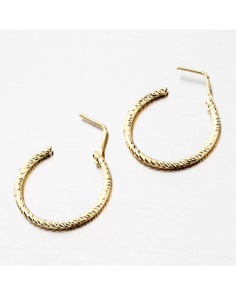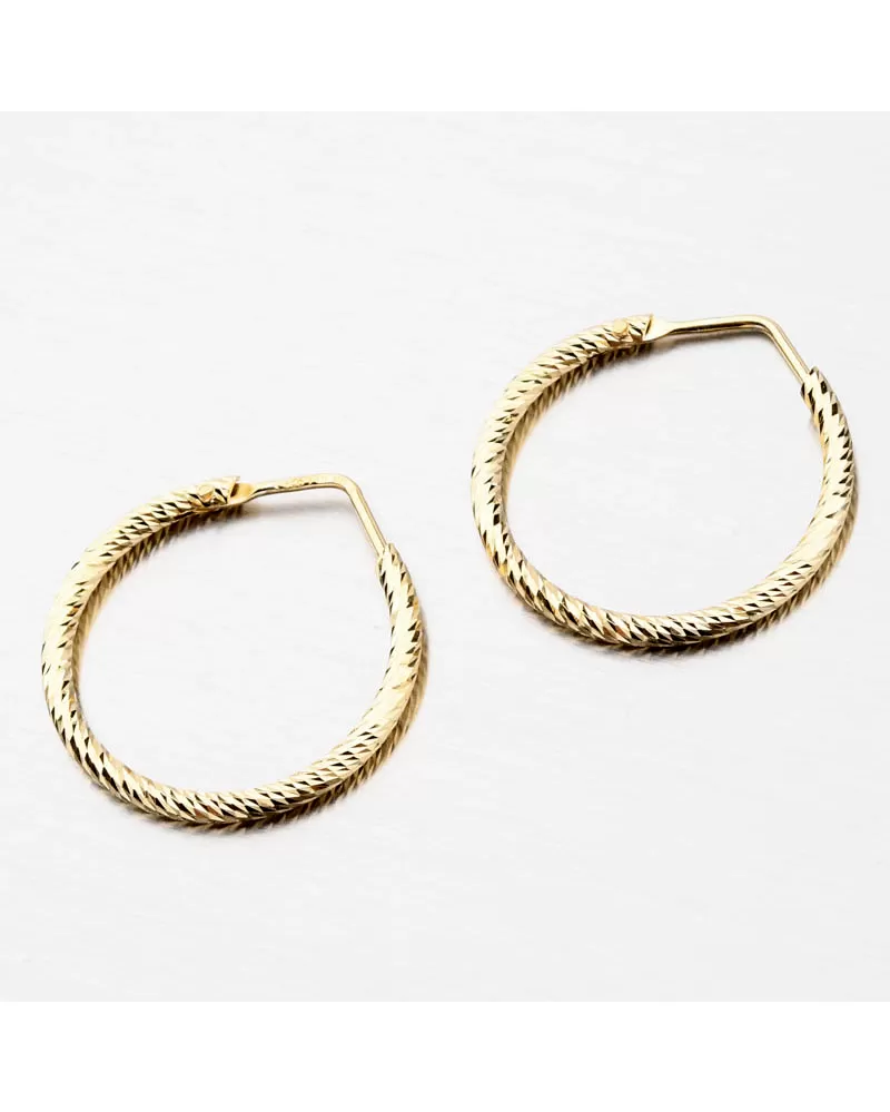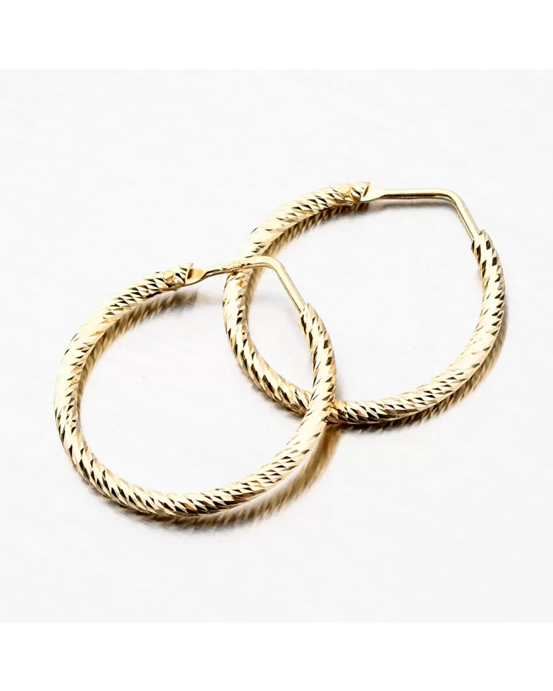 Kruhy nikdy nevyjdú z módy. Tieto sú zaujímavé precíznym gravírovaním. Gravírovanie je prevedené diamantovým rycím hrotom, ktorý zaisťuje najvyšší možný lesk gravírovaných facet. Náušnice kruhy sú pozlátené technikou PVD. Prednosťou zlatenia technológií PVD je vysoká tvrdosť a odolnosť proti oteru! Ide o hrubú vrstvu, ktorá preniká do pôvodného materiálu. Zlatenie technológií PVD sa dá porovnať s približne 12 mikrónmi galvanického zlatenia, čo je vysoká hodnota, ktorá pri bežnom nosení vydrží až 12 rokov. Tieto nadčasové náušnice musíte mať. Sú vhodné na každodenné nosenie.