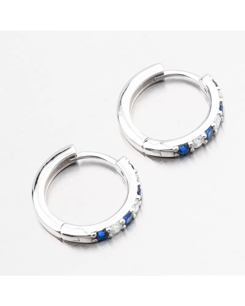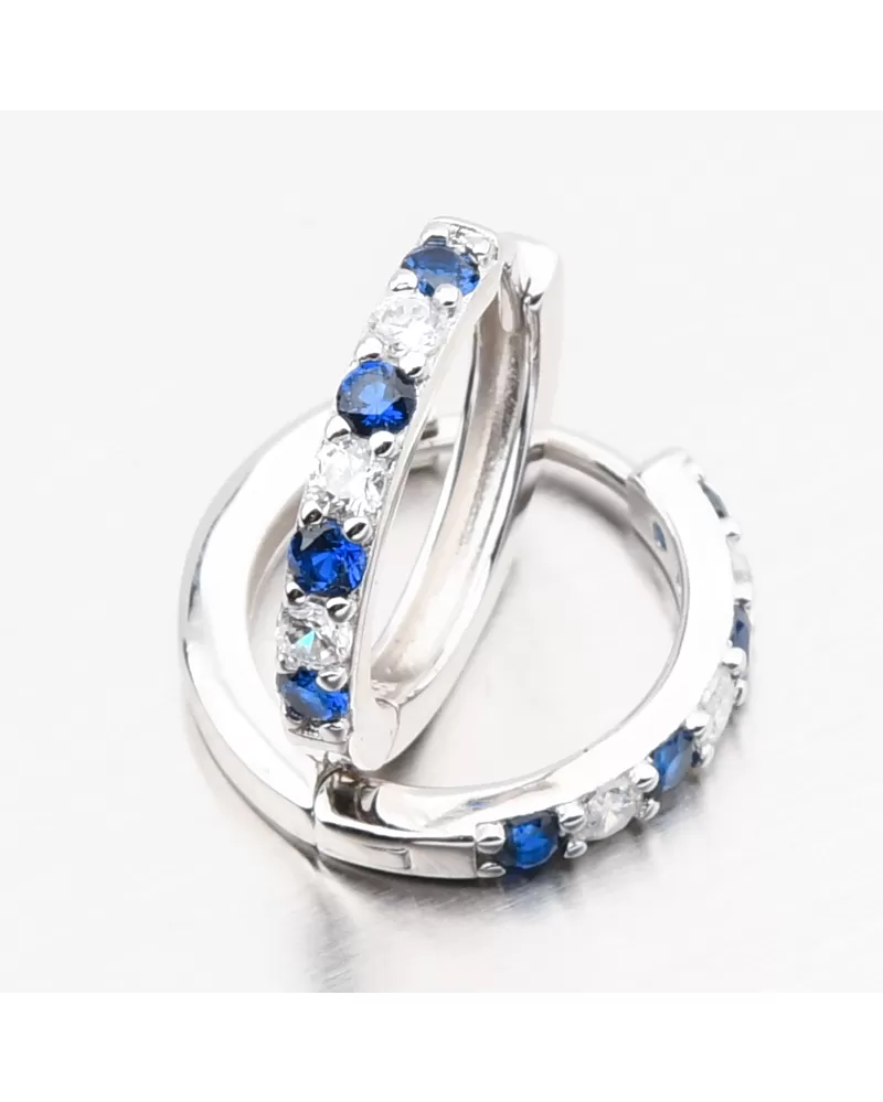 Veľmi populárny typ náušníc hlavne z dôvodu ich menšej veľkosti, a tým zaručuje pohodlie po celý deň opotrebenia. Kruhy sú zdobené pred jedným radom zirkónov, kde sa striedajú biela a tmavo modrá. Môžete kombinovať zirkóny s inými farebnými šperkami. Všetky zirkóny sú brilantným strihom, ktorý poskytuje maximálnu brilanciu leštenej fazety, dokonale odráža svetlo a neuveriteľne svieti zo všetkých pohľadov.
