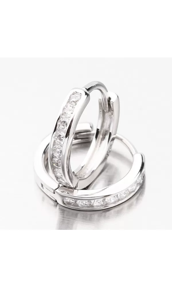 Nežné krúžky budú vhodné aj pre malé slečny, ktoré sa rady parádia. Samozrejme sa budú hodiť aj pre väčšie slečny alebo ženy, ktoré majú rady jemné a drobné náušnice. Kruhy sú zdobené v prednej časti jedným radom zirkónov, zadná strana je vo vysokom lesku. Biele zirkóny skvele môžete nakombinovať s ďalšími obľúbenými šperkami. Všetky zirkóny sú briliantového brusu, ktorý zaisťuje maximálnu brilanciu vybrúsených facet, dokonale odráža svetlo a neuveriteľne žiari z každého uhla pohľadu.