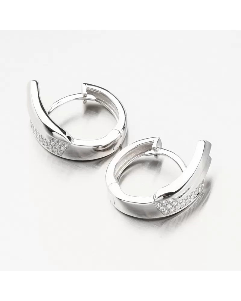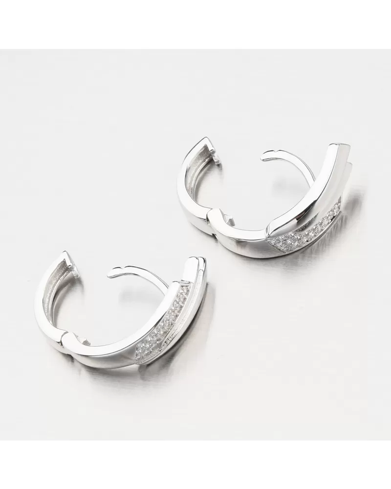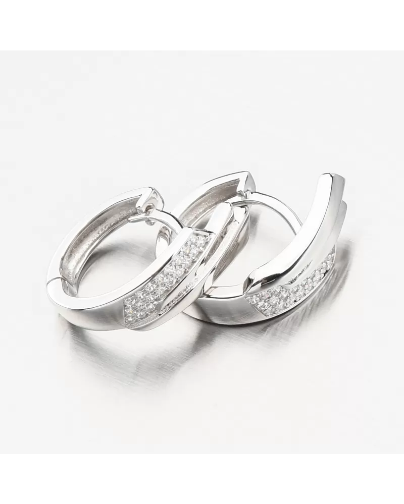Trblietavé strieborné náušnice kruhy s vyšším zdobením v mieste dierky, ktoré vyzerá veľmi elegantne, a zároveň krásne zamaskuje napríklad väčšiu dieru v ušiach. Náušnice sú zdobené troma radmi žiarivých zirkónov. Zirkóny sú briliantového brusu, ktorý zaisťuje maximálnu brilanciu vybrúsených facet, dokonale odráža svetlo a neuveriteľne žiari z každého uhla pohľadu.