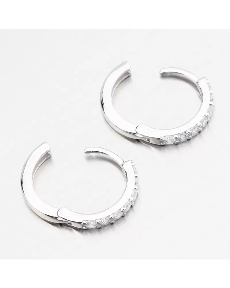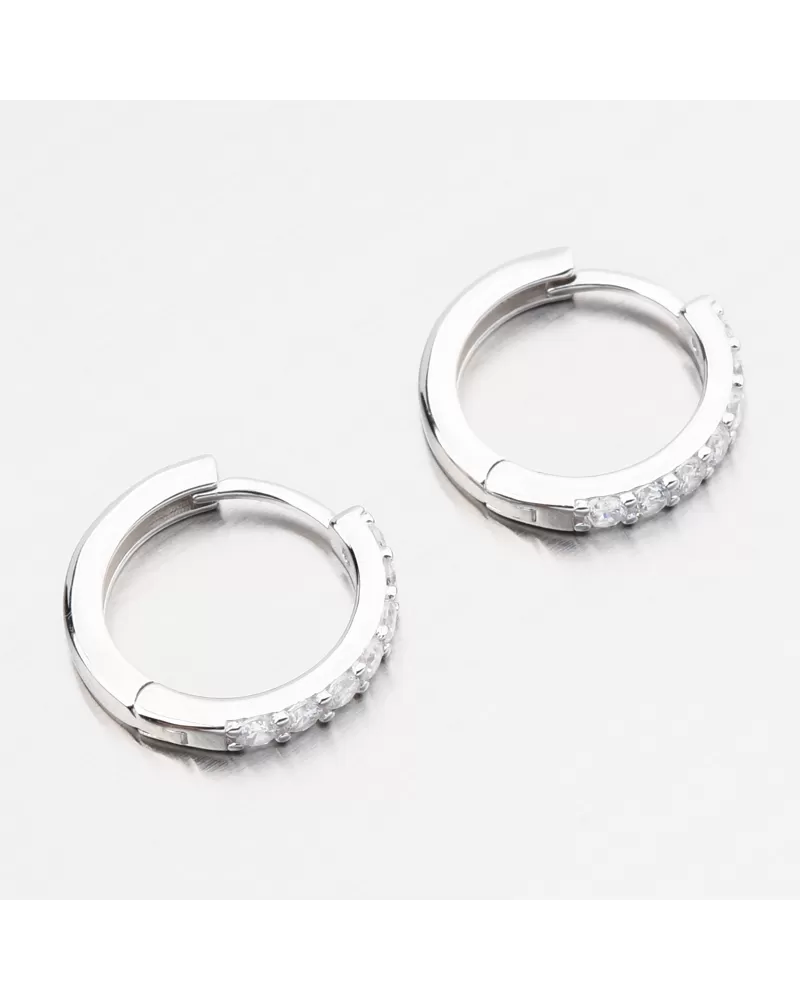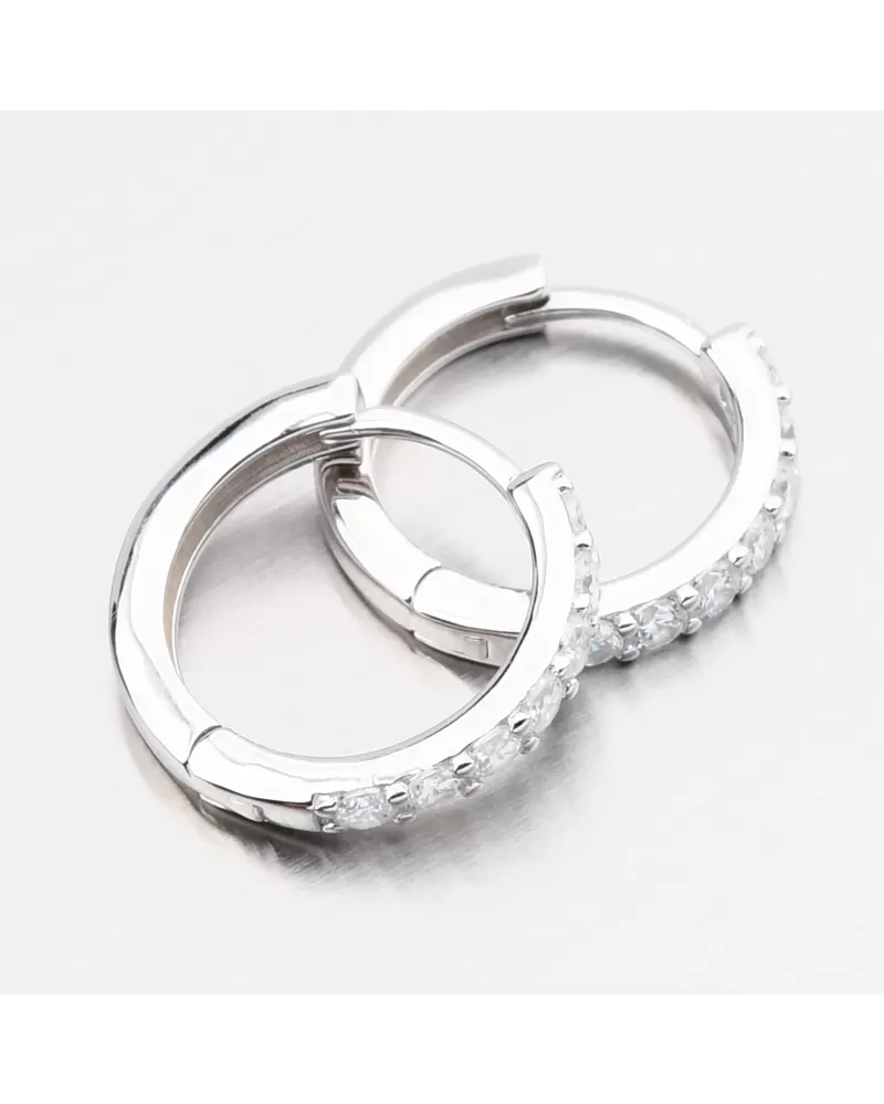 Veľmi populárny typ náušníc hlavne z dôvodu ich menšej veľkosti, a tým zaručuje pohodlie po celý deň opotrebenia. Kruhy sú zdobené pred jedným radom zirkónov. Všetky zirkóny sú brilantným strihom, ktorý poskytuje maximálnu brilanciu leštenej fazety, dokonale odráža svetlo a neuveriteľne svieti zo všetkých pohľadov.