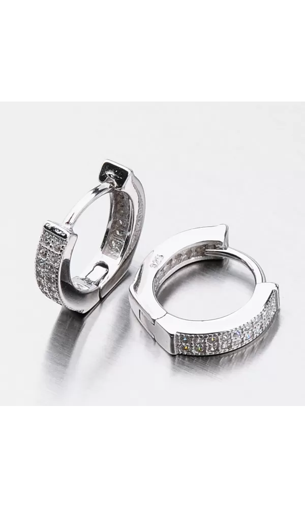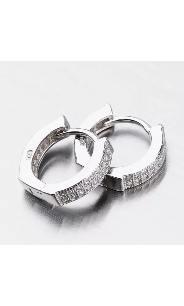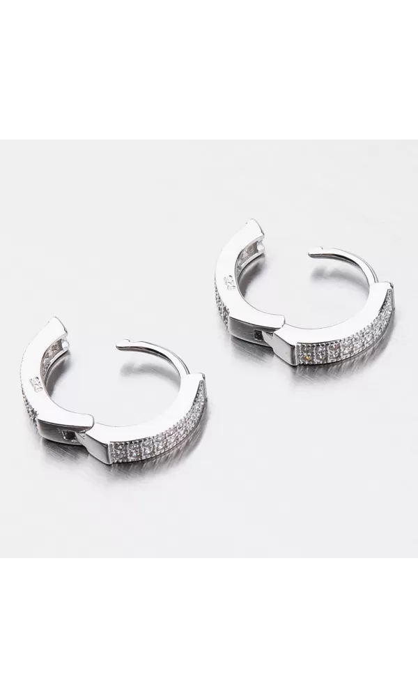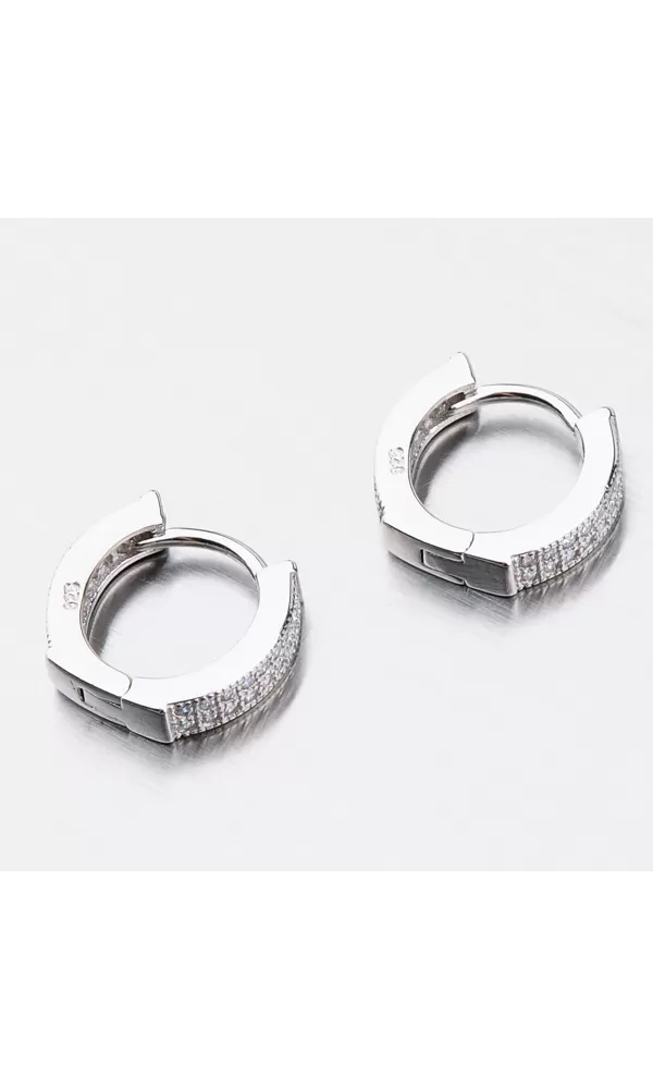 Kruhy sú zdobené zirkónmi v briliantovom bruse, ktoré sú vsadené z oboch strán kruhov.