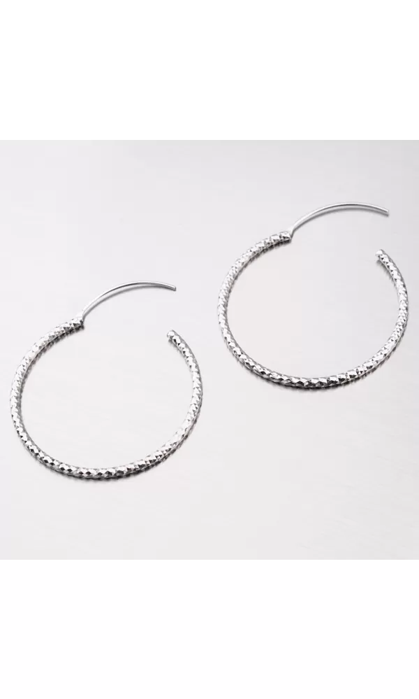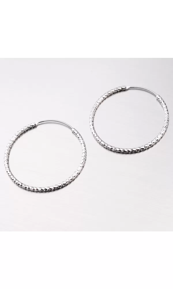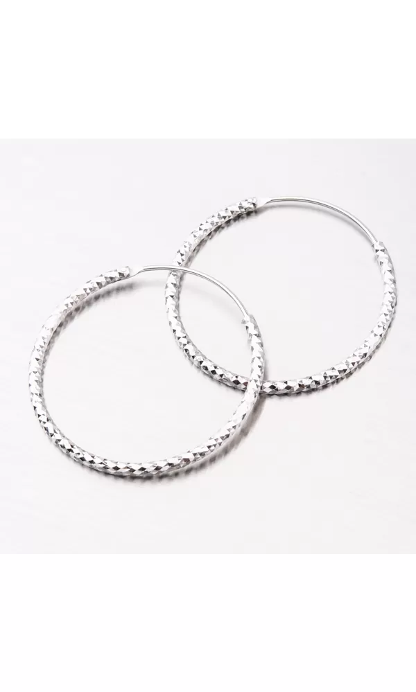 Strieborné náušnice kruhy by mala mať každá žena vo svojej šperkovnici. je to jeden z najobľúbenejších druhov náušníc. Tieto náušnice kruhy sú zaujímavým prekrásnym gravírovaním. Gravírovanie je prevedené diamantovým rycím hrotom, ktorý zaisťuje najvyšší možný lesk gravírovaných facet.