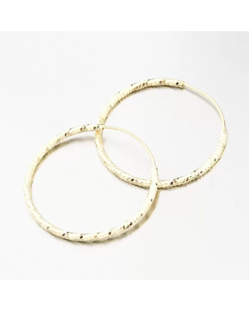 Výrazné strieborné kruhy s krúteným efektom budú dokonalým šperkom. Náušnice sú zdobené trblietavým gravírovaním a sú veľmi ľahké, preto nijako nevadí celodennému noseniu. Kruhy sú ideálnym doplnkom pre všetky príležitosti. Náušnice sú pozlátené technikou PVD vo farbe žltého zlata. Prednosťou zlatenia technológií PVD je vysoká tvrdosť a odolnosť proti oteru! Ide o hrubú vrstvu, ktorá preniká do pôvodného materiálu. Zlatenie technológií PVD sa dá porovnať s približne 6 mikrónmi galvanického zlatenia, čo je vysoká hodnota, ktorá pri bežnom nosení vydrží až niekoľko rokov.