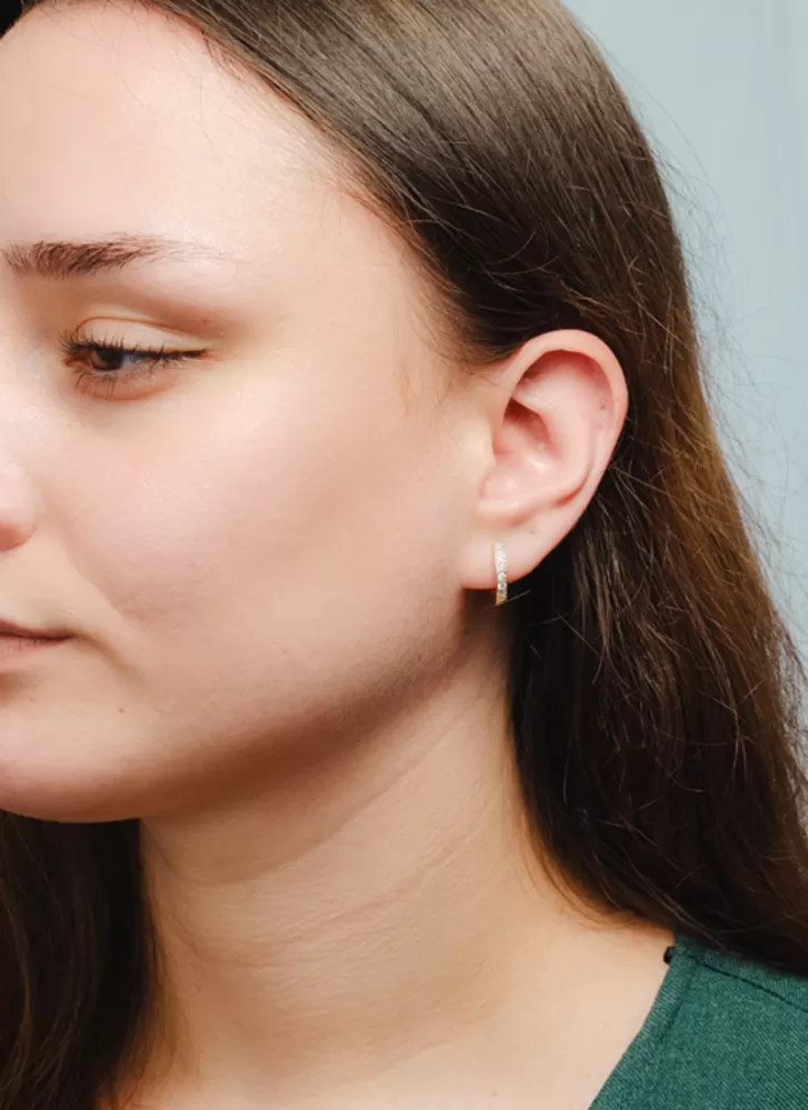Veľmi populárny typ náušníc hlavne z dôvodu ich menšej veľkosti, a tým zaručuje pohodlie po celý deň opotrebenia. Kruhy sú zdobené pred jedným radom zirkónov. Všetky zirkóny sú brilantným strihom, ktorý poskytuje maximálnu brilanciu leštenej stránky, dokonale odráža svetlo a neuveriteľne svieti zo všetkých pohľadov.