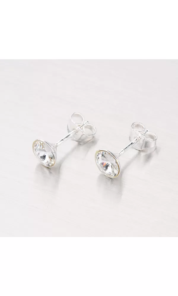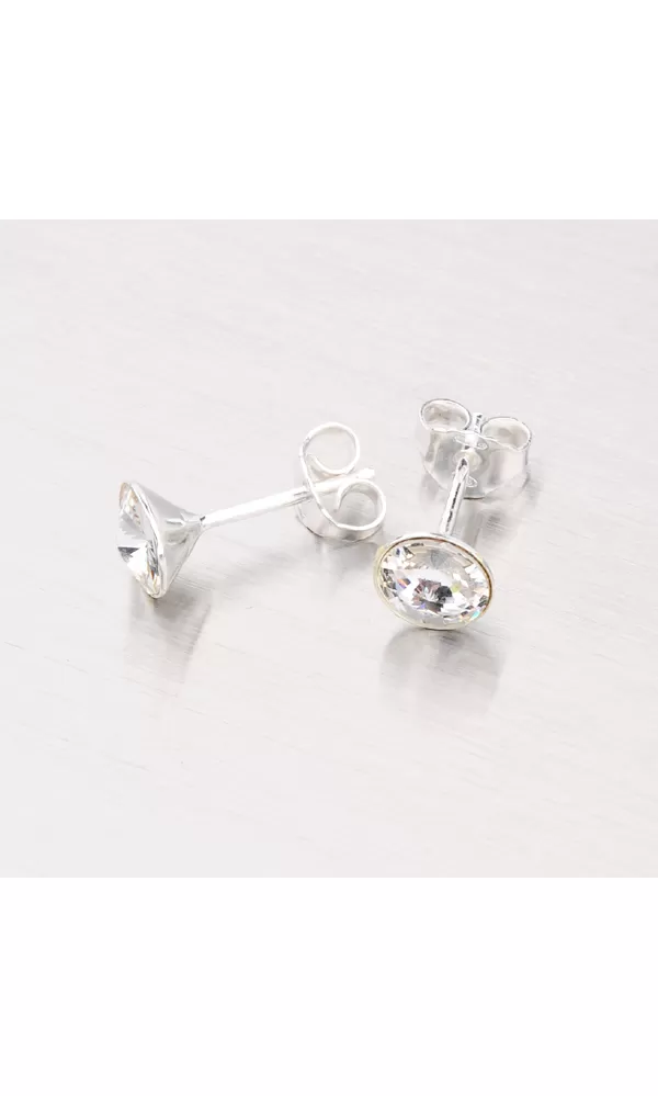 Módne dámske náušnice kôstky sú vyrobené z rhodiovaného striebra rýdzosti 925/1000 v lesklej povrchovej úprave. Náušnice sú zdobené veľkým kryštálom, ktorý je precízne brúsený, aby sa docielilo nádherných odleskov. Náušničky sa zapínajú na puzetky.