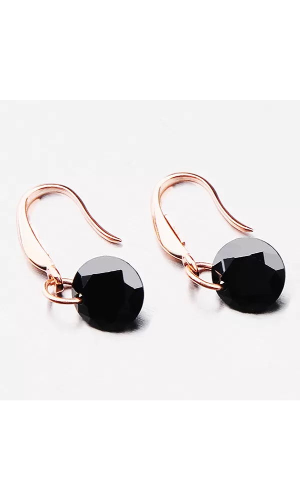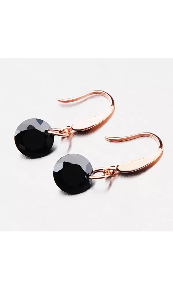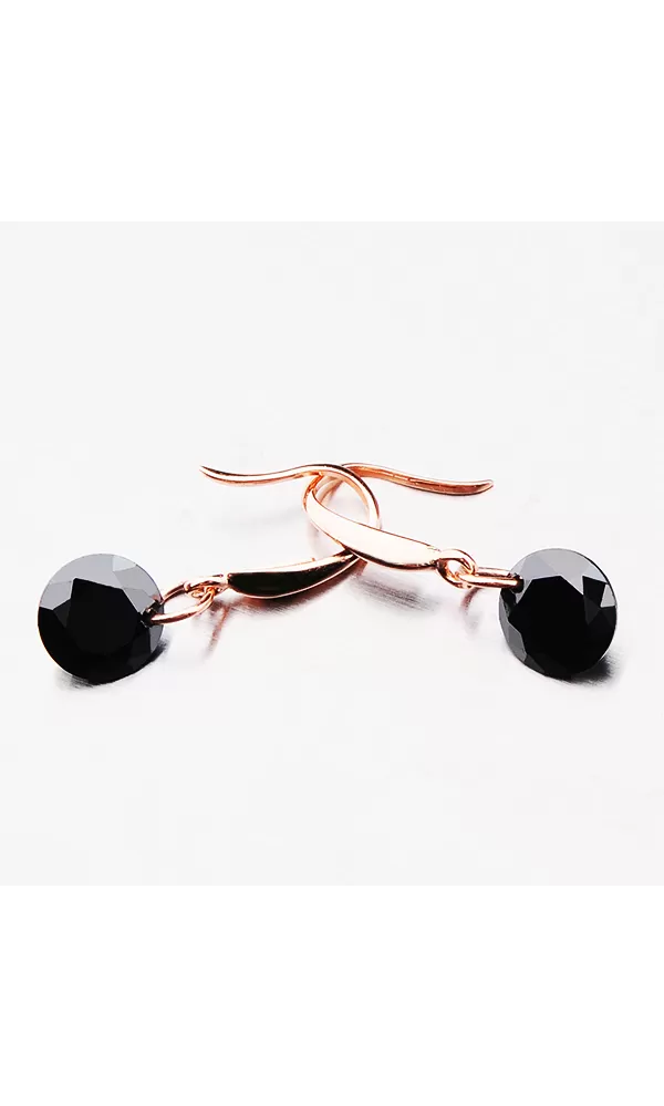 Náušnice pozlátené vo farbe ružového zlata sú zdobené čiernym kryštálom, ktorý odráža odlesky svetla každým vašim pohybom.