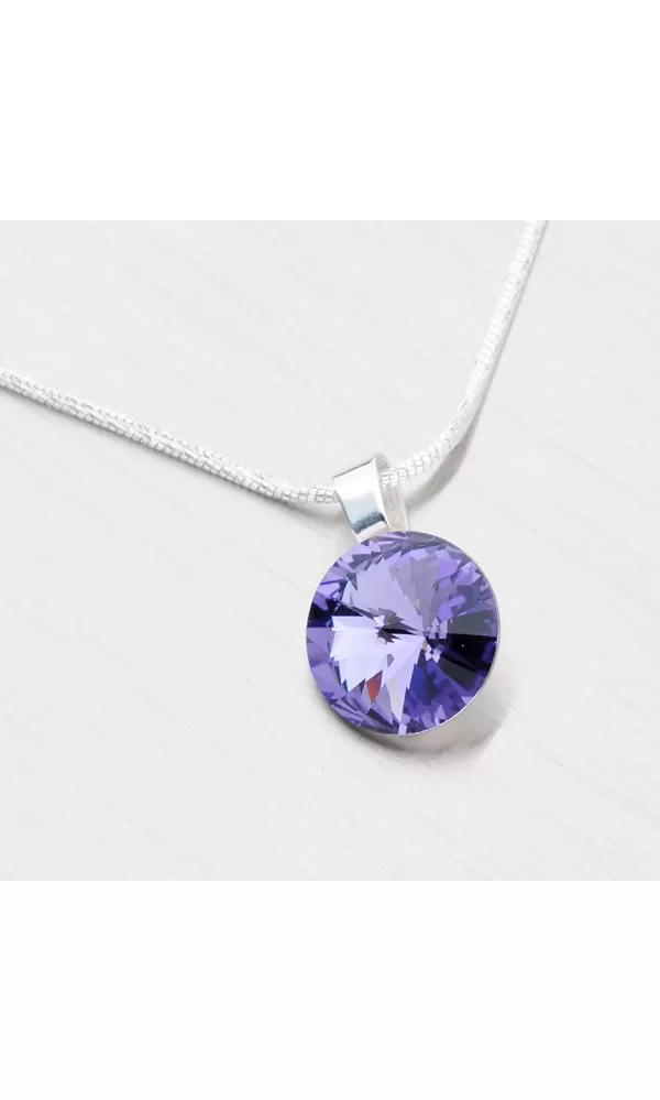 Dámske náušnice sú vyrobené zo striebra rýdzosti 925/1000 s jedným tmavo fialovým kryštálom v lesklej povrchovej úprave. Náušnice majú zapínajú na klapky.
