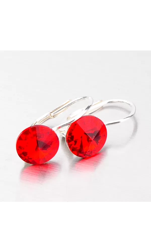 Dámske náušnice sú vyrobené zo striebra rýdzosti 925/1000 s jedným červeným kryštálom v lesklej povrchovej úprave. Náušnice majú zapínajú na klapky.