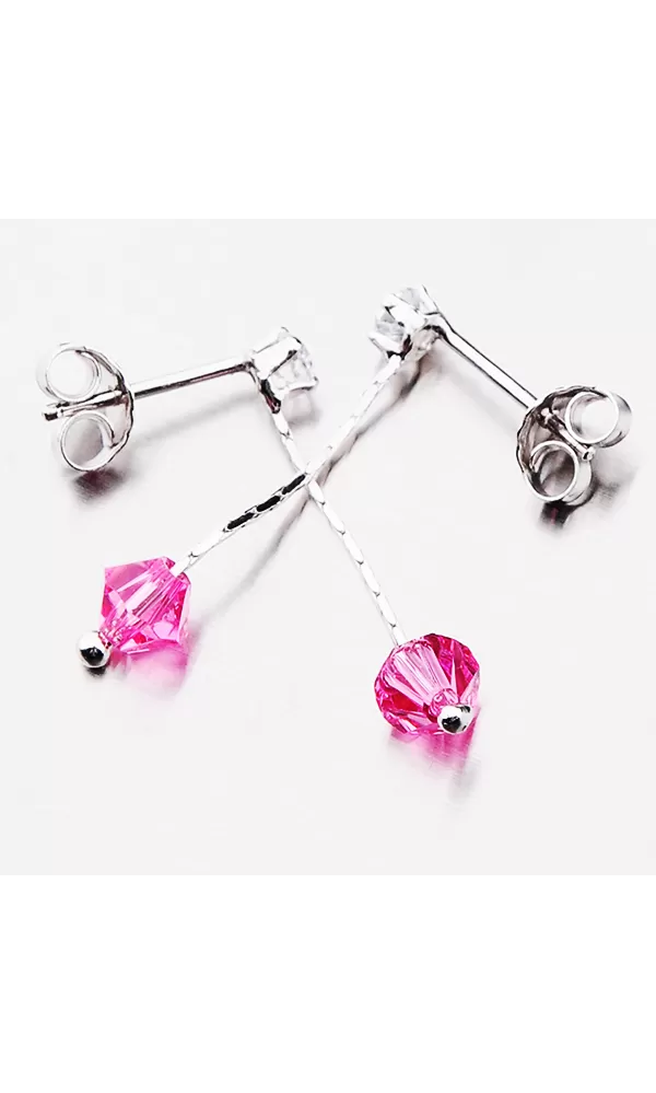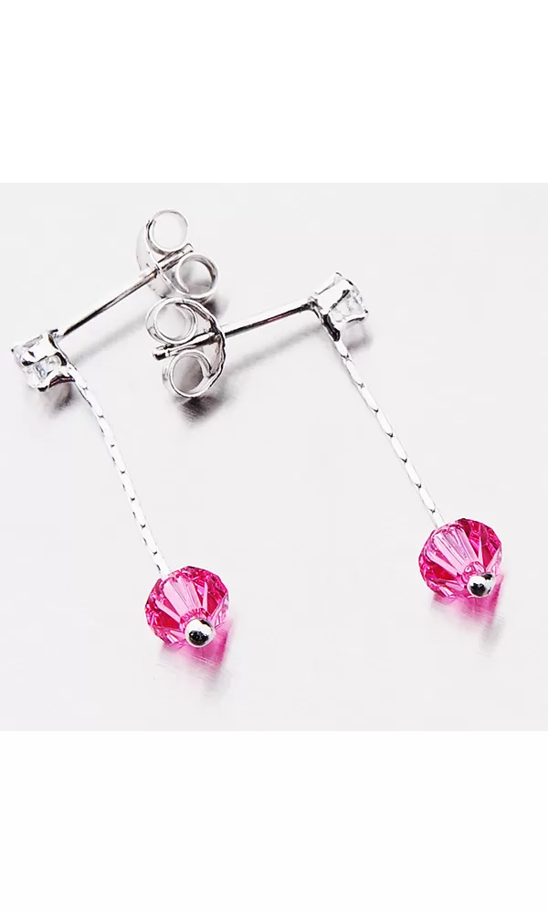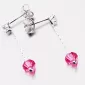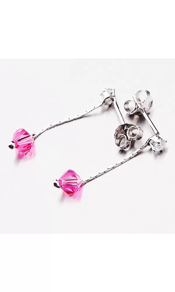 Visací náušnice jsou tvořeny řetízkem na, který je ukončen zářivým krystalem ve růžové barvě. Krystal je vsazen i na začátku náušnice. Tento krystal je uchycen čtyřmi krapnami. Visací náušnice se zapínají na puzety.