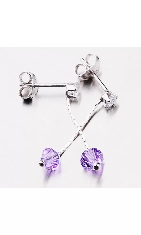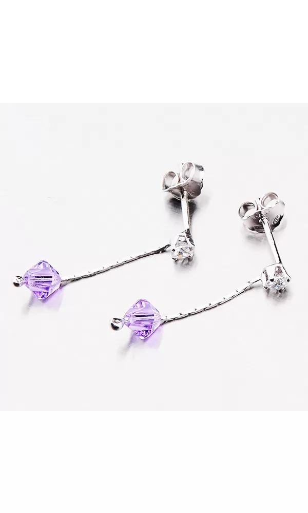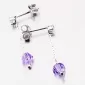 Visací náušnice jsou tvořeny řetízkem na, který je ukončen zářivým krystalem ve fialové barvě. Krystal je vsazen i na začátku náušnice. Tento krystal je uchycen čtyřmi krapnami. Visací náušnice se zapínají na puzety.