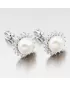 Neprehliadnuteľné kôstky sú zdobené veľkou syntetickou perlou v bielej farbe, ktorú obklopujú zirkónmi v briliantovom bruse. Náušnice sa zapínajú na… Celý popis