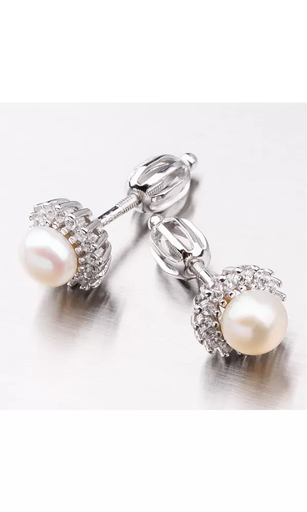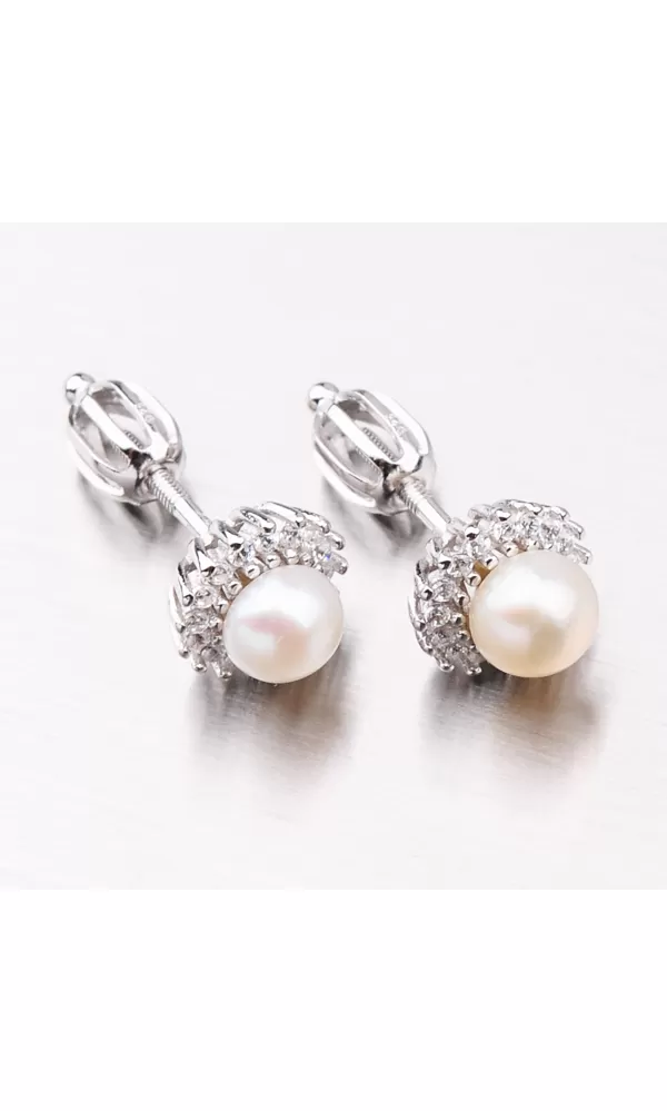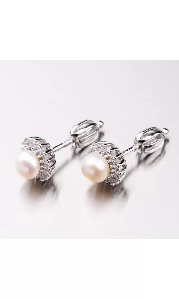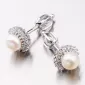 Dokonale padnúce dámske náušnice kôstky sú tvorené krúžkom, ktorý je zdobený zirkónmi v briliantovom bruse. Náušnice navyše zdobia syntetické perla v bielej farbe, ktorá dotvára luxusný dizajn náušníc. Náušnice sú vhodné na každodenné nosenie aj do spoločnosti. Zapínajú sa na skrutku.