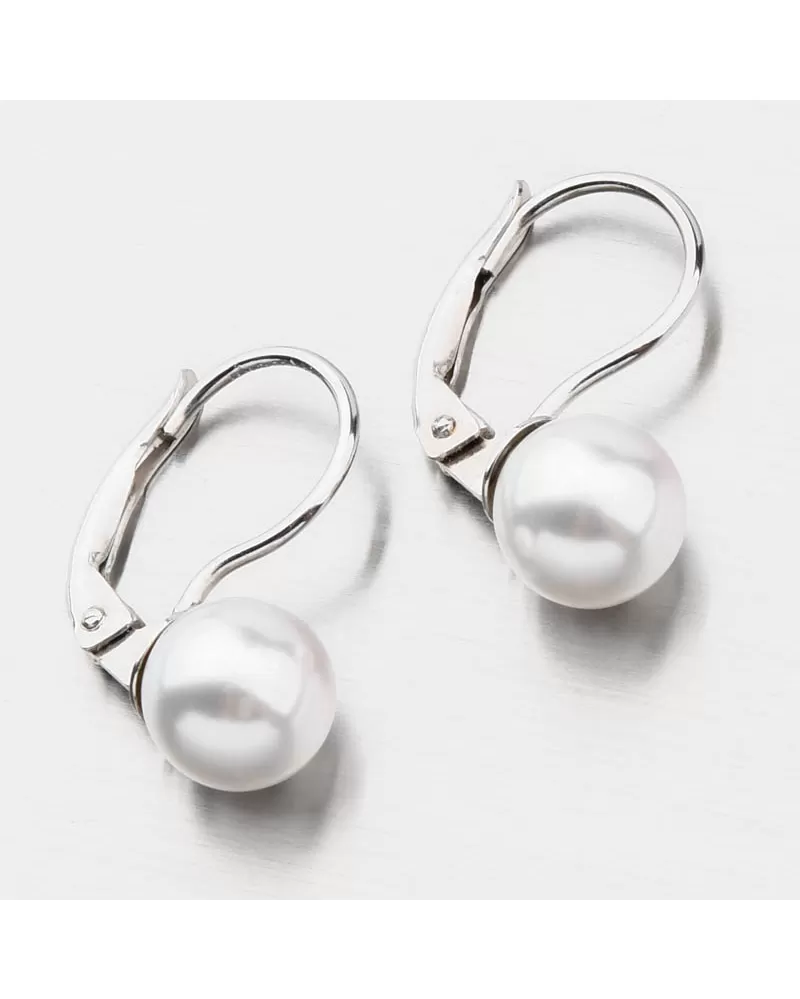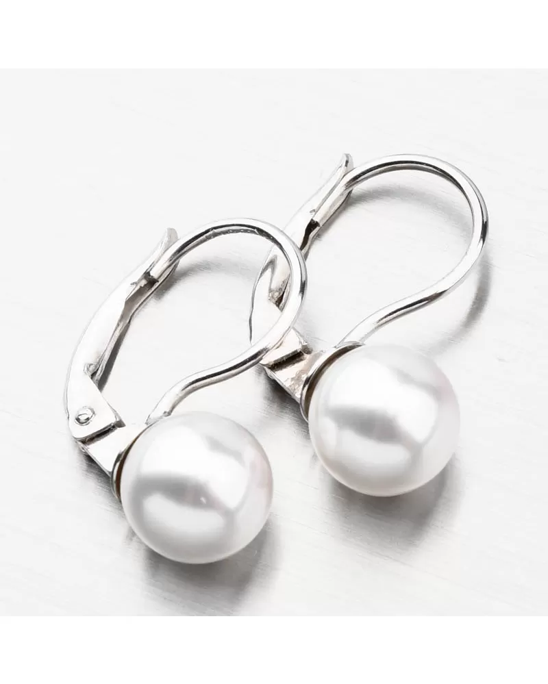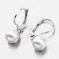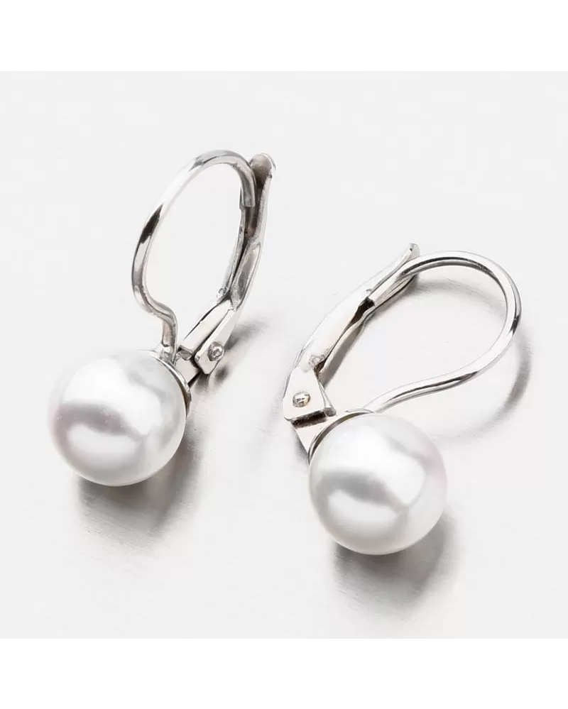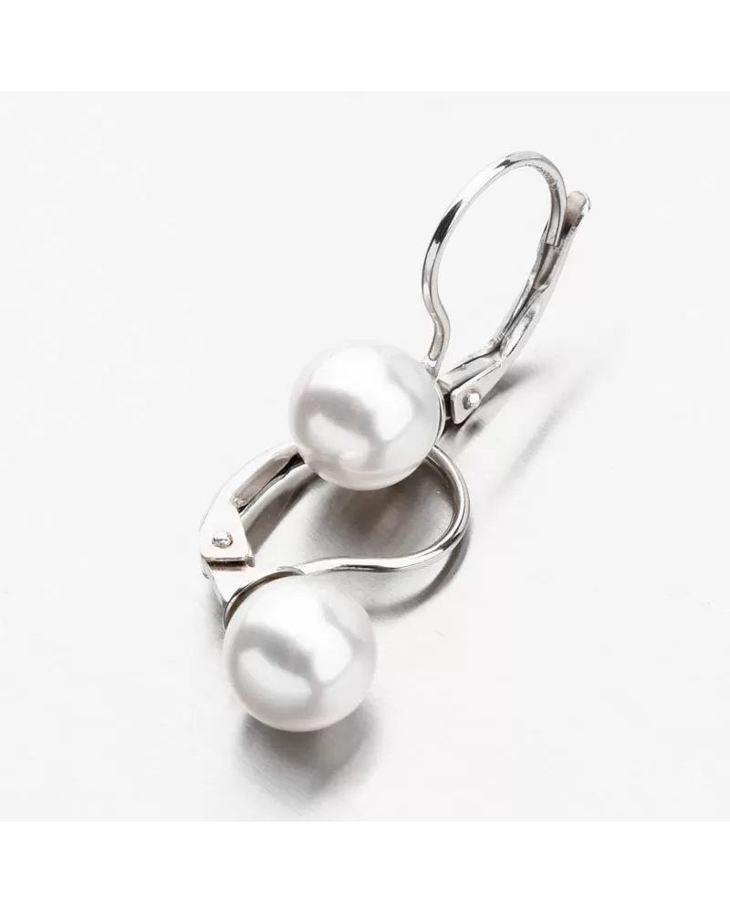 Parkovacie náušnice sú zdobené umelou perlom v bielej farbe. Náušnice sú vhodné pre každodenné nosenie a spoločnosť. Sú pripevnené na kvapku.