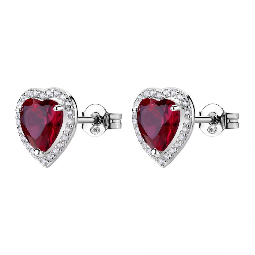 Zářivé náušnice jsou vyrobeny ze stříbra ryzosti 925/1000 v lesklé povrchové úpravě. Náušnice jsou zdobeny velkým červeným kubickým zirkonem a menšími čirými kubickými zirkony, které jsou vsazeny kolem dokola. Náušnice jsou pohodlné se zapínáním na puzety. Tvar srdce si oblíbíte. Dokonale padnou, schovají dírku, která někdy bývá problém. Náušnice jsou vhodné do společnosti i na běžné nošení. Šperk je rhodiován. Rhodium je ušlechtilý drahý kov ze skupiny platinových kovů. Rhodiováním stříbrných prstenů galvanickým nanášením tohoto drahého kovu se stává povrch šperku tvrdší, stálejší a odolnější vůči vnějším vlivům jako je mechanický otěr, poškrábání, nabíhání stříbra, lidský pot, kosmetické přípravky a další. Rhodium je antialergické.