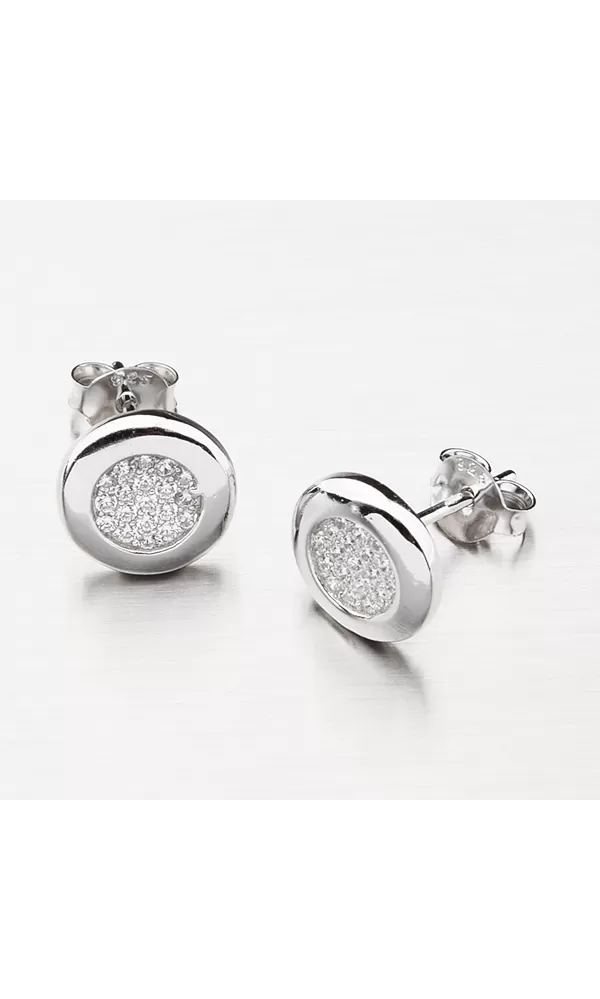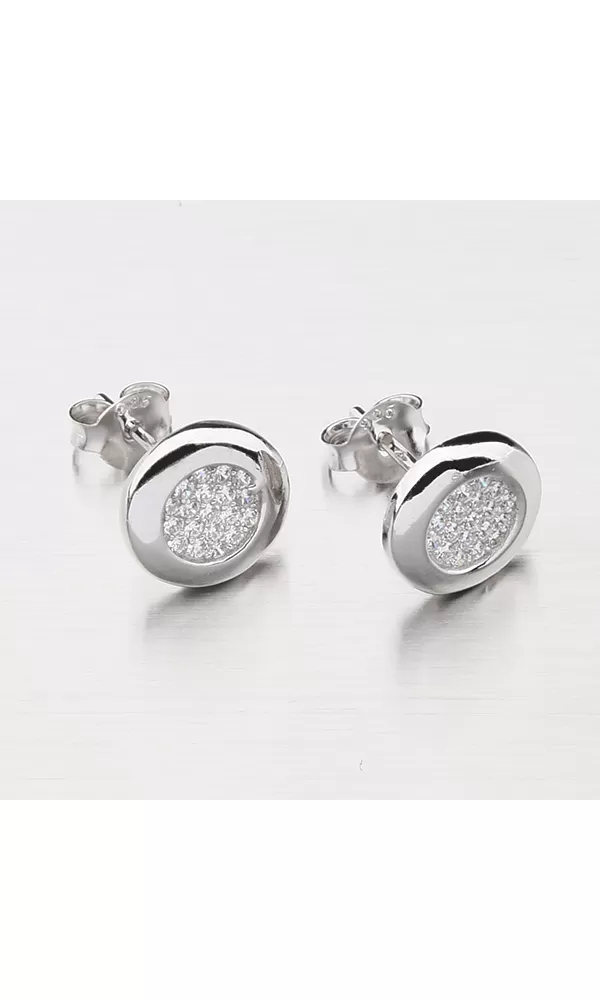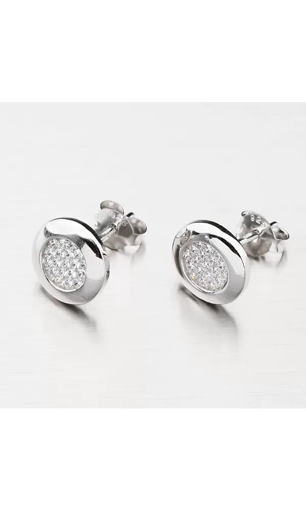 Výborný tip na darček pre ženu čo milujete. Krásne strieborné náušnice kôstky sú vyrobené v lesklej povrchovej úprave so zirkónmi. Zirkóny sú vsadené uprostred náušnice a tvoria srdce, ktoré nádherne žiari. Náušnice sa zapínajú na puzetku.