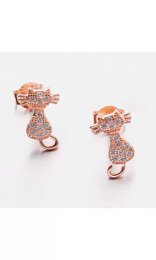 Strieborné náušnice sú v tvare mačky a potešia nejednu milovníčku zvierat. Mačka je veľmi prepracovaná a zdobí ju zirkónmi v briliantovom bruse. Náušnice sa zapínajú na puzety.