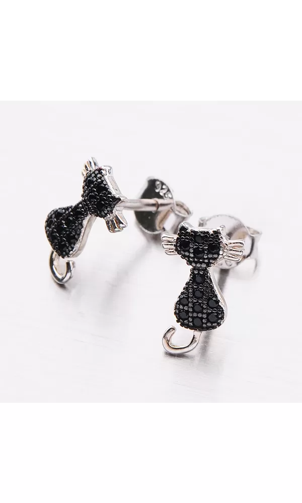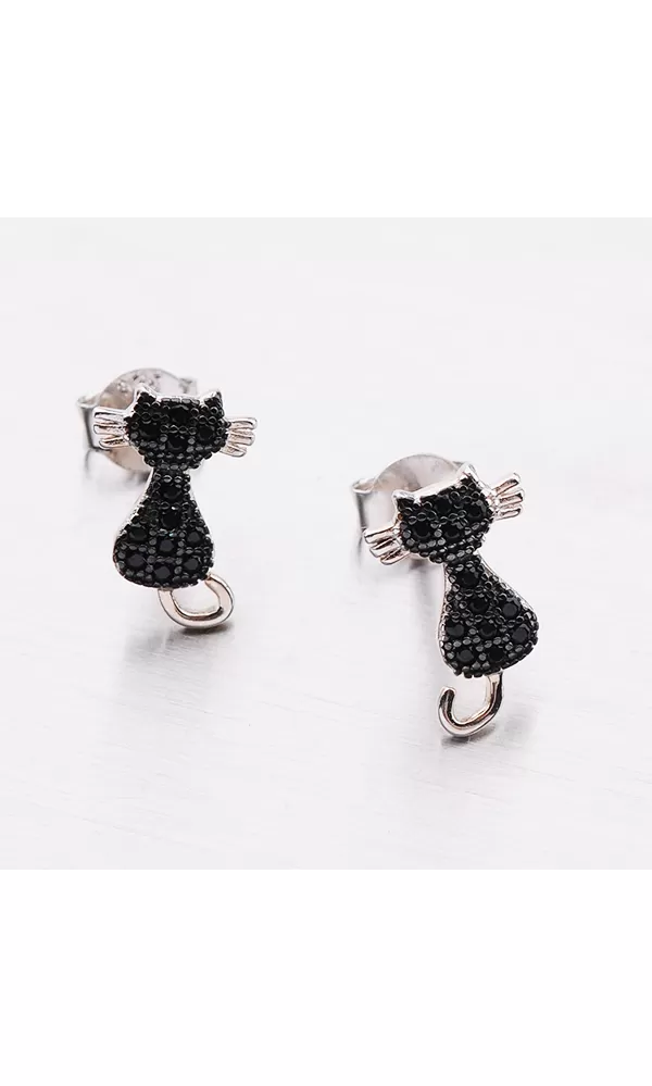 Strieborné náušnice sú v tvare mačky a potešia nejednu milovníčku zvierat. Mačka je veľmi prepracovaná a zdobí ju zirkónmi v briliantovom bruse. Náušnice sa zapínajú na puzety.