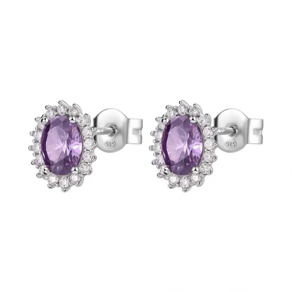 Žiarivé náušnice sú vyrobené zo striebra rýdzosti 925/1000 v lesklej povrchovej úprave. Náušnice sú zdobené veľkým fialovým kubickým zirkónom a menšími čírymi kubickými zirkónmi, ktoré sú vsadené dookola. Náušnice sú pohodlné so zapínaním na puzety. Ich tvar si obľúbite. Dokonale sadnú, schovajú dierku, ktorá niekedy býva problém. Náušnice sú vhodné do spoločnosti aj na bežné nosenie.