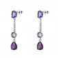Dizajn náušníc zaujme závesným príveskom s dĺžkou cca 36,5 mm. Každá náušnica je osadená kombináciou čírych a fialových kubických zirkónov, ktoré vytvárajú očarujúci kontrast svetla a farieb. Fialové kamienky symbolizujú kreativitu, pokoj a noblesu, vďaka čomu náušnice pôsobia elegantne a zároveň výrazne. Zapínanie je riešené klasickou prackou, ktorá zaručuje bezpečné a pohodlné nosenie po celý deň.