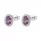 Zářivé náušnice jsou vyrobeny ze stříbra ryzosti 925/1000 v lesklé povrchové úpravě. Náušnice jsou zdobeny velkým růžovým kubickým zirkonem a menšími čirými kubickými zirkony, které jsou vsazeny kolem dokola. Náušnice jsou pohodlné se zapínáním na puzety. Jejich tvar si oblíbíte. Dokonale padnou, schovají dírku, která někdy bývá problém. Náušnice jsou vhodné do společnosti i na běžné nošení.