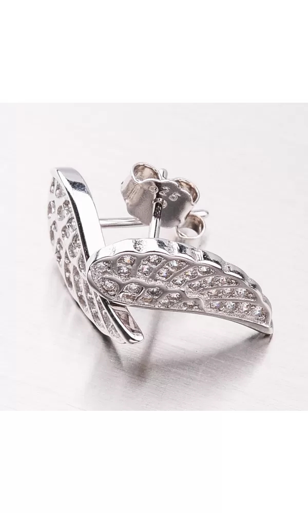 Nádherné náušnice v tvare anjelských krídiel vás uchvátia nielen spracovaním ale aj žiarivými zirkónmi v briliantovom bruse. Zirkóny sú vsadené s maximálnou presnosťou a ich intenzívny ligot sa nedá prehliadnuť. Strieborné náušnice sa zapínajú na puzete.