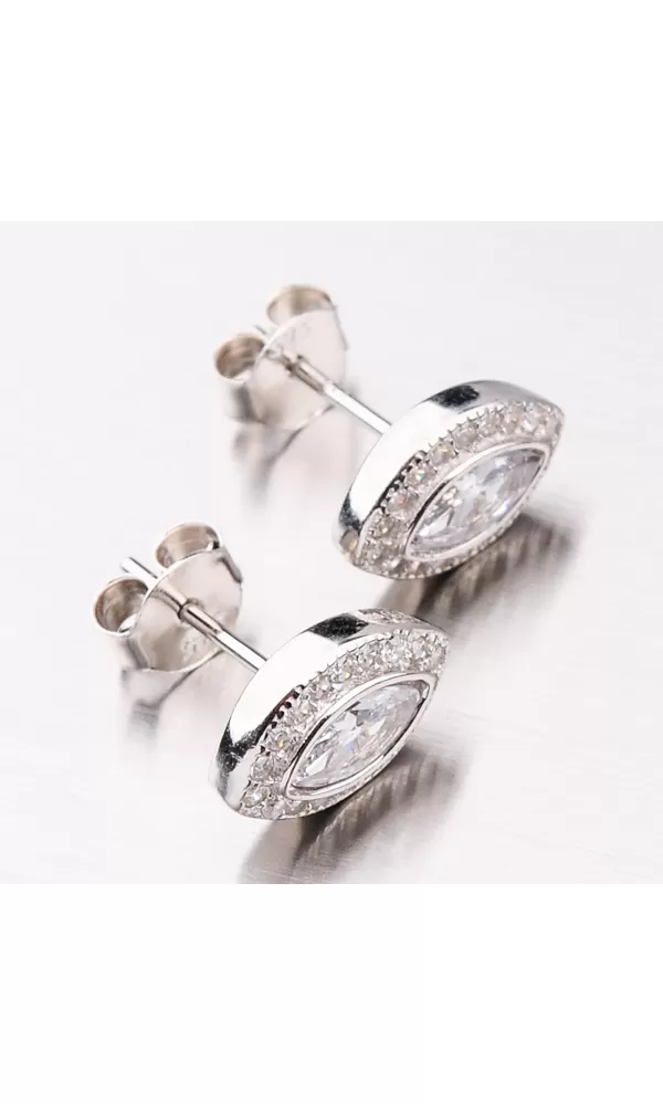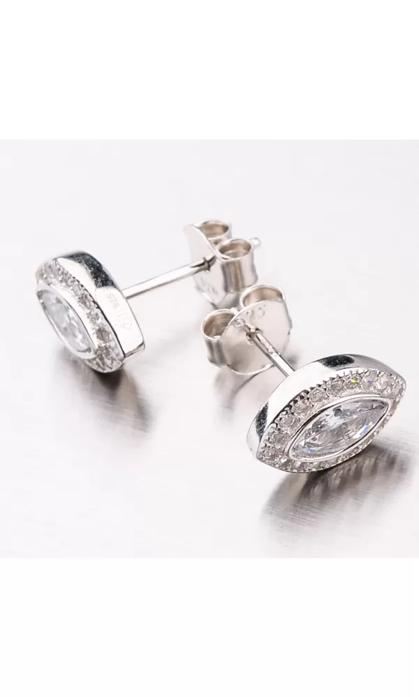 Strieborné náušnice kôstky vás na prvý pohľad zaujmú veľkým zirkónom, ktorý oplýva intenzívnymi odleskami. Náušnice sú v tvare slzy, ktorá na uchu skvele vynikne. Okolo veľkého zirkónu, sú vsadené okrúhle zirkóny v briliantovom bruse. Zirkóny sú vsadené s maximálnou presnosťou. Strieborné náušnice kôstky sa zapínajú na puzete.